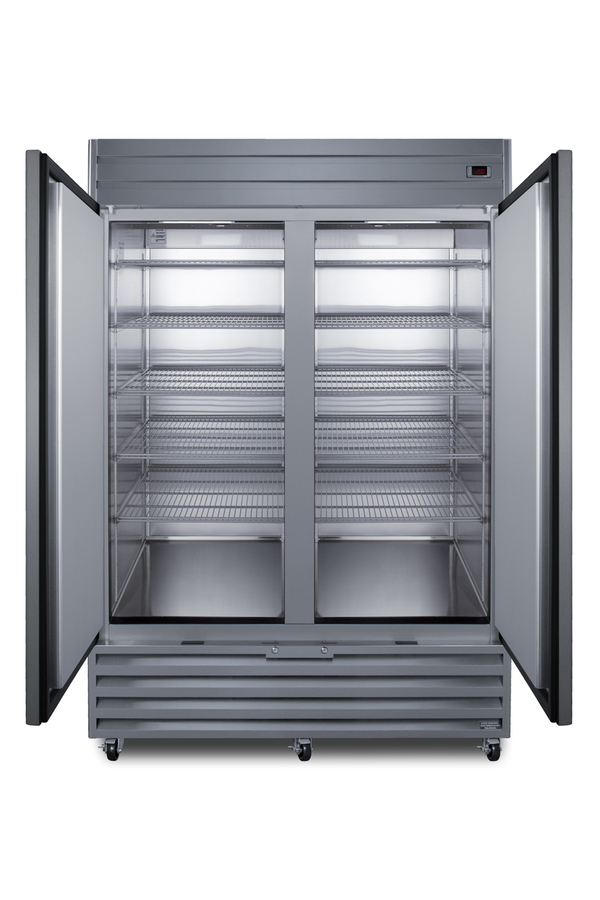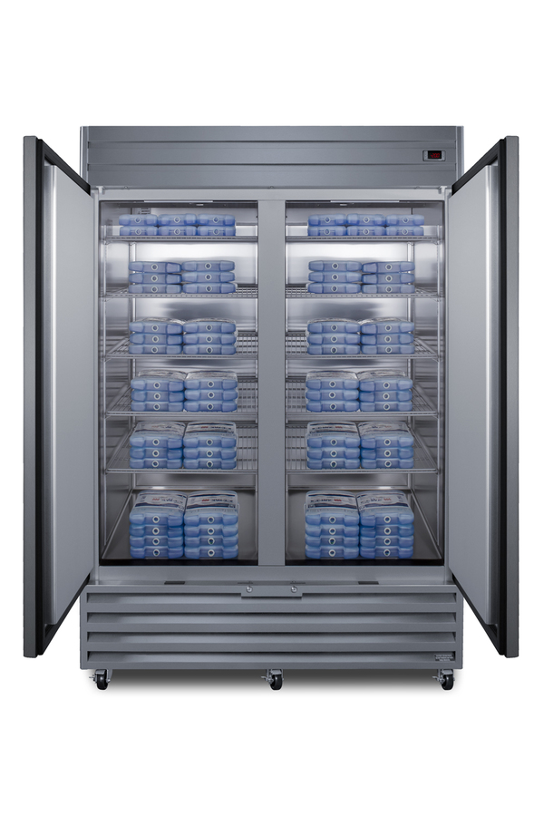 Accucold's lineup of general purpose refrigeration includes TAA compliant choices in a variety of sizes manufactured in North America for reliable cold storage. Made in North America, model ACFF436L is an upright freezer with a French door swing and nearly 39 cu.ft. of interior storage capacity. Adjustable cantilevered shelving lets you accommodate a variety of sizes to maximize the interior space. Powerful fan-forced cooling ensures fast temperature recovery and even cold air distribution. This model uses frost-free operation for easy user maintenance, with audible high/low temperature alarms to warn if the unit goes out of range. Designed for optimum general purpose storage in healthcare and laboratory settings, the temperature range is -15ºC to -30ºC. The ACFF436L comes in stainless steel exterior, with six pre-installed casters for easy mobility. LED lighting offers an efficient presentation. This unit features a high efficiency compressor and rear condenser. The sealed rear offers a better fit and easier cleanup with no exposed coils. Eco-friendly R290a refrigerant helps to ensure a greener footprint compliant with the latest CARB regulations. For a matching refrigerator, see Accucold's ACRR432L. Note: This product is intended for a wide variety of basic storage applications. Storage of high-value vaccines, life science materials, and medical/clinical biologicals require a product offering tighter temperature control and/or alarms, monitoring, and backup. For more information, browse Accucold's purpose-built line or contact our product specialists at 1-888-4-MED-LAB.