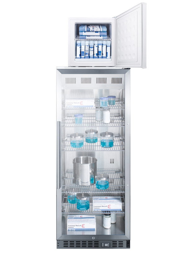 Accucold's stackable PRO series refrigerator-freezer combinations offer space-saving cooling solutions for general purpose use. Sized at just 24" wide, the ACR1151-FS24LSTACKPRO combines two conveniently designed general purpose units into one slim-fitting footprint. Pharmaceutical all-refrigerator ACR1151PRO offers 11 cu.ft. of storage, with a self-closing glass door and adjustable cantilevered shelving. Frost-free operation minimizes user maintenance, with an internal fan to ensure more even temperature distribution. The cabinet and interior are constructed from stainless steel for lasting durability and easier cleanup. Compact FS24LPRO all-freezer utilizes a static manual defrost system. Both models include locks for added security, with two keys included for each unit. Hospital grade cords with 'green dot' plugs offer added convenience for busy facilities, ensuring the cords are not easily dislodged from the wall socket. Factory-installed probe holes are included on both units to allow users to install their own monitoring devices. All Accucold STACKPRO units ship in three boxes and require some minor assembly upon delivery. Additional stacked combinations can be created by ordering virtually any two units with our StackRack. These units can also be customized with a variety of refrigeration options, including NIST calibrated thermometers, USB data loggers, open door alarms, and much more. To create a custom combination, contact our sales team at 718-893-3900. NOTE: Accucold refrigerators are purpose-built to the support meeting the current CDC (Centers for Disease Control) guidelines for the storage of vaccines. At this time, Accucold refrigerators have not been evaluated to the new NSF 456 standard. As referenced in the current Vaccine Storage and Handling Toolkit, these units incorporate microprocessor controls and forced air circulation for stable operation between 2 and 8ºC. For additional temperature assurance, the CDC recommends a calibrated digital data logger (DDL), which can be added with the factory-installed option DL2B or addition of the DL2BKit accessory.