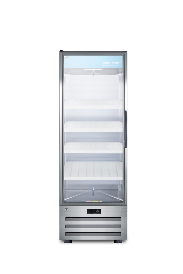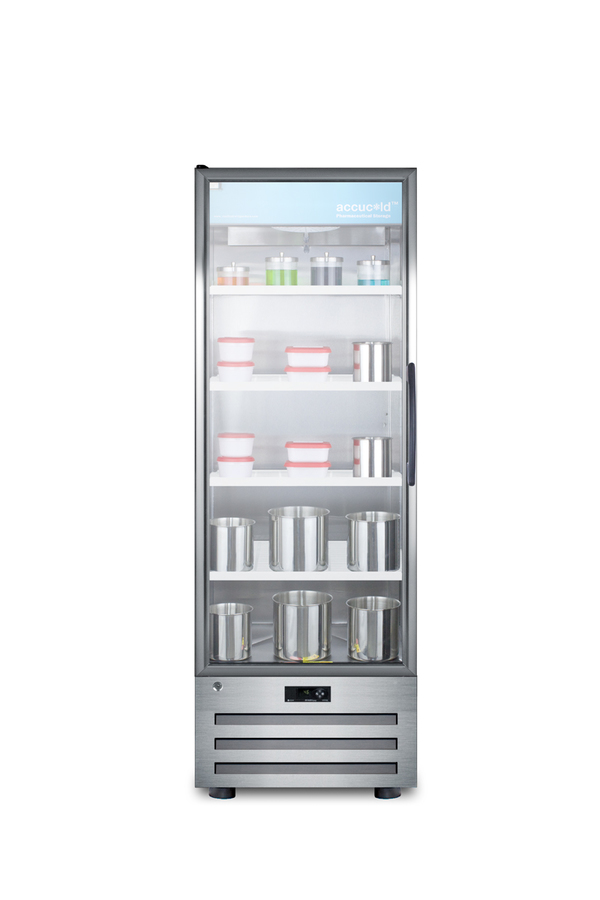 Accucold by Summit Appliance carries a quality line of pharmaceutical refrigeration for temperature-safe storage of sensitive materials. Made in North America, the ACR1415LH offers 14 cu.ft. of interior storage inside a conveniently sized footprint that's less than 25" wide and deep. Adjustable cantilevered shelving lets you accommodate a variety of sizes to maximize the interior space. The shelves are constructed from heavy duty recycled molded plastic for lasting durability. Fan-forced cooling ensures cold air is evenly distributed throughout the stainless steel interior. This model uses automatic defrost operation for easy user maintenance, with audible high/low temperature alarms to warn if the unit goes out of range. Designed for optimum pharmaceutical storage, the temperature range is 2ºC to 8ºC. The ACR1415LH comes with a stainless steel cabinet with a self-closing door, an ideal time-saving feature for busy staffs that helps to ensure items aren’t accidentally exposed to room temperature. A factory-installed front lock helps to secure items, with an easy grip handle designed to last. LED lighting in the door panel offers an efficient presentation, while the tempered glass offers a heat-safe view. A hidden light switch is conveniently located towards the top of the unit, letting staff turn the lights off when needed. This unit features a high efficiency compressor and rear condenser. NOTE: This unit has a left hand door swing and is not field reversible. For a right hand version, see the ACR1415RH. NOTE: Accucold refrigerators are purpose-built to the support meeting the current CDC (Centers for Disease Control) guidelines for the storage of vaccines. At this time, Accucold refrigerators have not been evaluated to the new NSF 456 standard. As referenced in the current Vaccine Storage and Handling Toolkit, these units incorporate microprocessor controls and forced air circulation for stable operation between 2 and 8ºC. For additional temperature assurance, the CDC recommends a calibrated digital data logger (DDL), which can be added with the factory-installed option DL2B or addition of the DL2BKit accessory.