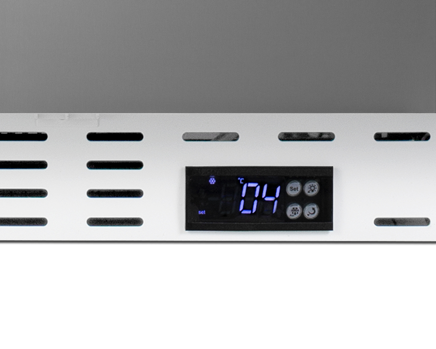 Electronic controls located in the front kickplate for easy & institutive temperature management, with a readout in Fahrenheit or Celsius