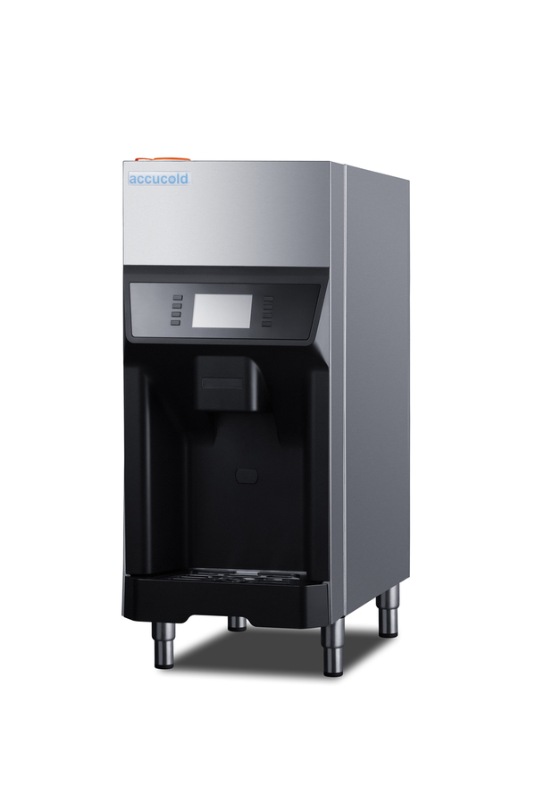 Accucold's series of commercially approved ice machines and countertop ice makers bring powerful performance, user-friendly convenience, and professional style to commercial settings. The AIWD220 is an ENERGY STAR certified countertop ice + water dispenser that is ETL-S listed to NSF-12 standards. This unit can produce up to 220 lbs. of nugget ice daily, and the interior can store up to 6.2 lbs. This ice + water dispenser features three easy-to-use functions - ice, water, or ice + water, which provide expanded functionality, while the illuminated display and digital controls ensure easy access and control of the unit. Adjustable legs offer flexible height options, while the stainless steel front provides a professional look. The removable tray and sealed back make for easy cleaning. This unit comes equipped with UV lighting in the dispenser and is top-vented. With its countertop footprint and large production output, the AIWD220 is the perfect unit for hospital waiting areas, break rooms, or similar settings looking for a water and ice dispenser that is attractive, efficient, and user-friendly. Note: The AIWD220 must be used with a drain and should be placed in a space that allows for draining below the unit. A water filtration system is available and recommended for the unit's optimal performance. See model FILTER282TWIN or order AIWD220FLTR. Explore all of Accucold's commercial ice machines and icemakers at accucold.com