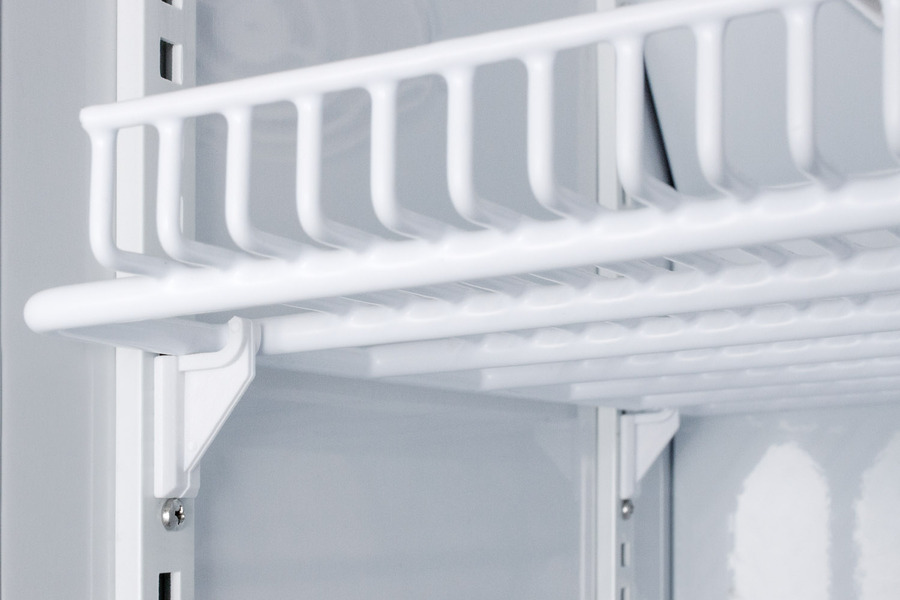 Shelves can be positioned with a front lip for small storage items or reversed to a flat position to better hold larger items, with multiple shelf positions spaced at 1/2" to accommodate virtually any size