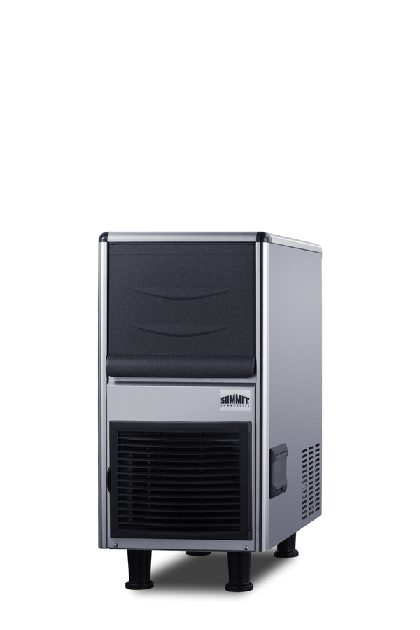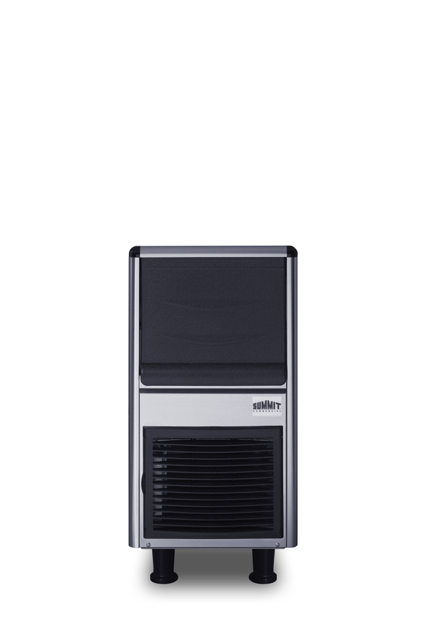 Summit's series of commercially approved ice machines bring powerful performance, user-friendly convenience, and professional style to commercial settings. Model BIM55BU is an ENERGY STAR certified commercial ice machine that is ETL-S listed to NSF-12 standards. This ice machine features a fully finished stainless steel cabinet and a jet black front with an easy-to-use slide-up lid. It is designed for freestanding use and features an air-cooled system to prevent overheating. Inside, the BIM55BU produces up to 55 lbs. of clear, bullet-style ice daily. Bullet ice features a hole at its center, which exposes liquids to more surface area than other ice shapes. The result is a cooler drink in less time than traditional cubed ice. With its unique shape, bullet ice can be produced and harvested faster, making it an ideal solution in fast-paced commercial environments. The interior can store up to 33 lbs. to help meet the needs of high-traffic areas. All digital controls are conveniently located at the unit's side, including a function to adjust the thickness of each ice cube. This unit also has a water filter and a removable mesh filter at the rear to ensure easier condenser maintenance. This automatic ice machine features a clean function, a full bin sensor, attractive LED lighting, and an ice scoop to maximize convenience. With its unique size, user-friendly controls, and large bullet ice production capacity, the BIM55BU is a great fit for break rooms, bars, restaurants, cafes, hotels, and similar spaces. For this ice machine with a larger production capacity, see model BIM77BU. Explore all of Summit's ice machines and icemakers at summitappliance.com