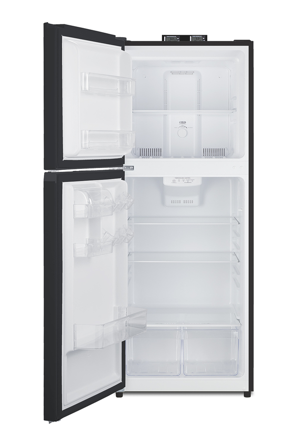 Summit's selection of break room refrigeration features a variety of units for convenient and reliable storage in hospitals, clinics, and other facilities. The BKRF1087BLHD is a full-sized refrigerator-freezer specifically designed for use in break rooms and other common areas. The large interior offers 10.1 cu.ft. of storage capacity. A dial thermostat located inside affords easy temperature management, with two NIST-calibrated thermometers externally mounted on top of the unit to provide a temperature readout of the current and high/low temperatures in each section to the nearest tenth of a degree. Temperature can be viewed in Celsius or Fahrenheit for added convenience. Each thermometer includes an audible high/low alarm function to warn users if the refrigerator or freezer section goes out of the specified temperature range. Inside, the BKRF1087BLHD utilizes frost-free operation for easy user maintenance. Both the refrigerator and freezer compartments include adjustable spill-proof glass shelves and door racks for easy storage. A large crisper drawer helps keep your greens fresh. The refrigerator section includes an automatic interior light for an easy view of stored contents. The BKRF1087BLHD features an all-white interior for easy cleanability. This unit has a left-hand door swing. (Note: The doors are not user-reversible. For a right-hand door swing, see the BKRF1087B.), as well as with white(see the BKRF1088W) and stainless steel (see the BKRF1089PL) doors. Visit summitappliance.com to view the complete collection.