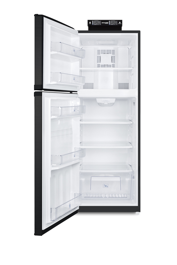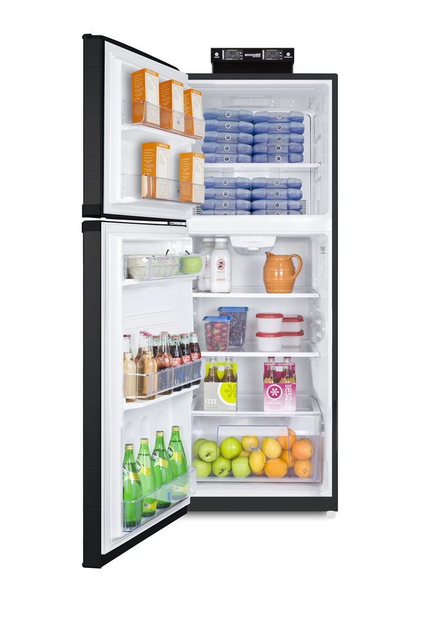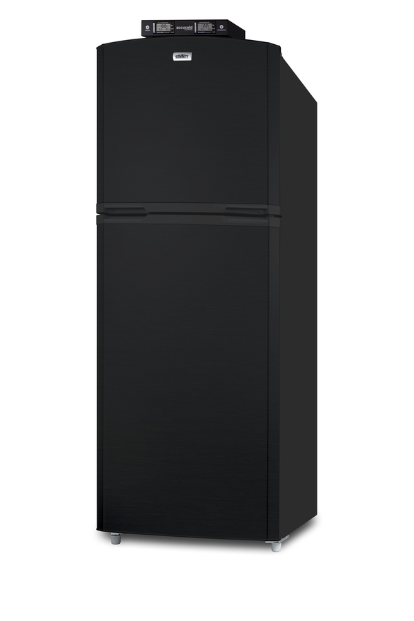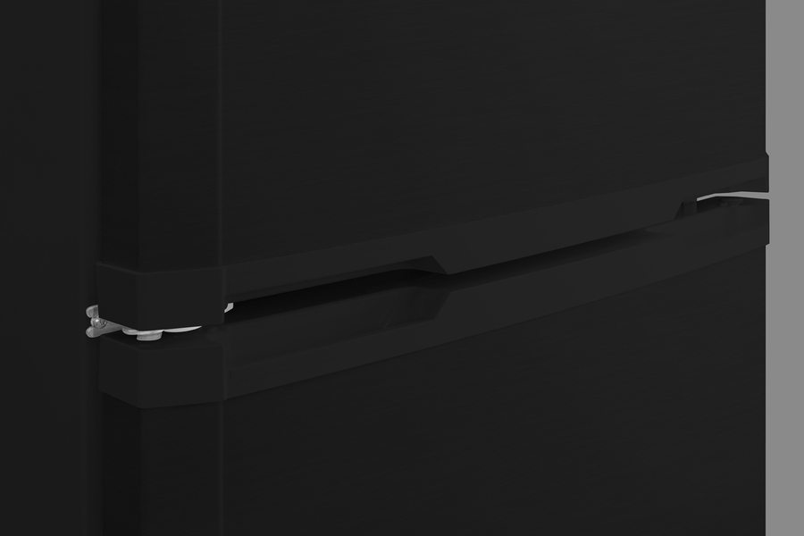 SUMMIT's selection of break room refrigeration features a variety of units for convenient and reliable storage in hospitals, clinics, and other facilities. Made in North America, the BKRF14B is a full-sized refrigerator-freezer specifically designed for use in break rooms and other common areas. The large interior offers 12.9 cu.ft. of storage capacity. A dial thermostat located inside affords easy temperature management, with two NIST calibrated thermometers externally mounted on top of the unit to provide a temperature readout of the current and high/low temperatures in each section to the nearest tenth of a degree. Temperature can be viewed in Celsius or Fahrenheit for added convenience. Each thermometer includes an audible high/low alarm function to warn users if the refrigerator or freezer section goes out of the specified temperature range. Inside, the BKRF14B utilizes frost-free operation for easy user maintenance. Both the refrigerator and freezer compartments include adjustable spill-proof glass shelves and door racks for easy storage. A large crisper drawer helps keep your greens fresh. The refrigerator section includes an automatic interior light for an easy view of stored contents. The BKRF14B features glossy doors that feature a smooth design with the look of a horizontal grain, with a textured cabinet in a deep gray finish. This unit comes with a left-hand door swing. (Note: The doors are not reversible. For a right-hand door swing, see the BKRF14B.) This unit is also available with white (see the BKRF14WLHD) or stainless steel (see the BKRF14SSLHD) doors. Visit summitappliance.com to view the complete collection.