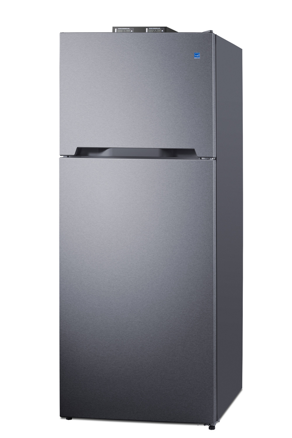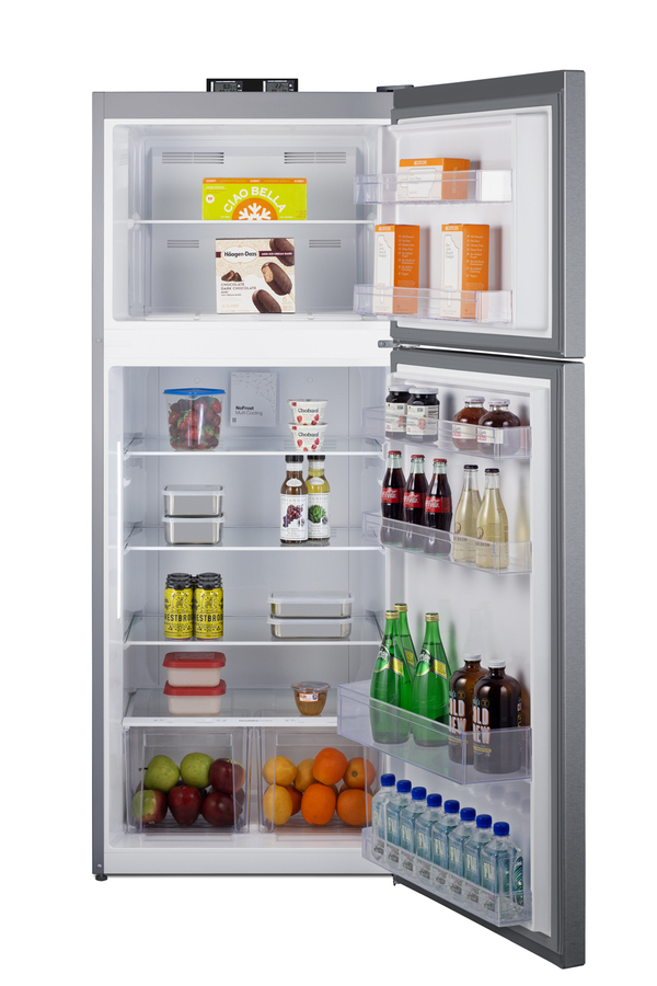 Summit's selection of break room refrigeration features a variety of units for convenient and reliable storage in hospitals, clinics, and other facilities. The ENERGY STAR certified BKRF15SS is a top-mount refrigerator-freezer that offers a spacious 14.3 cu.ft. of storage capacity in a popular 28" fit. The stainless steel doors and cabinet offer a high-end look for contemporary spaces, with a sealed back design to ensure easier cleanup. The doors are user-reversible to best suit your space. Located at the top of the BKRF15SS are two NIST-calibrated thermometers to provide a temperature readout of the current and high/low temperatures in each section to the nearest tenth of a degree. Temperature can be viewed in Celsius or Fahrenheit for added convenience. Each thermometer includes an audible high/low alarm function to warn users if the refrigerator or freezer section exceeds the specified temperature range. Inside, the BKRF15SS utilizes frost-free defrost to minimize user-maintenance. The freezer compartment includes a removable glass shelf and two fixed door shelves. The SuperFreeze setting is ideal for freezing newly loaded foods quickly. The refrigerator section is fully featured for fresh foods with interior lighting, spill-proof adjustable glass shelves, two humidity-controlled clear crispers, and removable door racks that accommodate gallon-sized containers. With its ENERGY STAR certified performance and convenient features, the European-made BKRF15SS is the ideal choice for break rooms and facilities looking for an energy-efficient refrigerator-freezer. Additional colors and sizes are available.