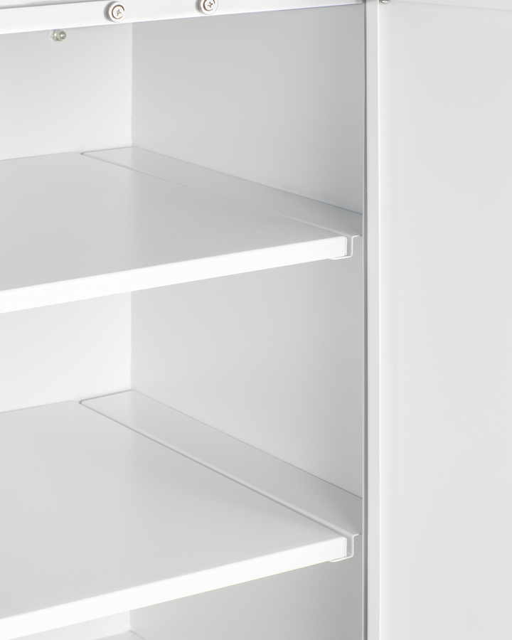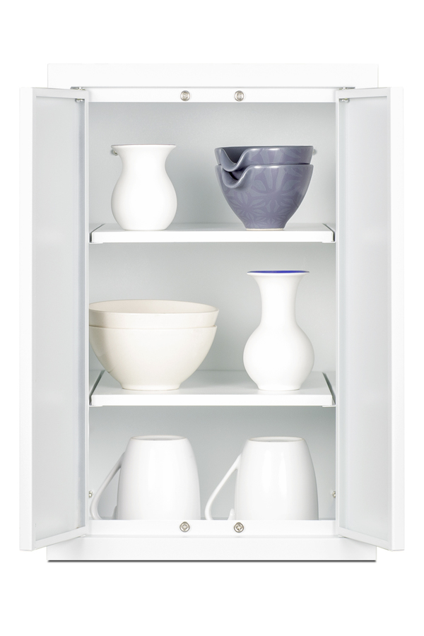 Summit's line of wall cabinets brings added storage space to your kitchen in a convenient easy-to-install design. Sized at 12" wide and 12" deep, the CAB1218TALLWH is perfect for smaller kitchen spaces. Constructed from powder-coated metal, it comes in a white finish with angled blade-style handles in brushed stainless steel for a modern look. The french door design makes it easy to store and remove contents as needed. Inside, two removable shelves allow you to accommodate a variety of sizes. The cabinet ships fully assembled with a mounting bracket and all the equipment needed for proper installation. With its slim-fitting design and durable construction, the CAB1218TALLWH is the perfect addition to any existing kitchen space, and can easily be paired with any Summit all-in-one kitchenette. For this unit in a black finish, see the CAB12TALLBLLK, or visit www.summitappliance.com to explore our entire line of kitchenette wall cabinets.