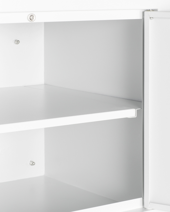 Summit's line of wall cabinets brings added storage space to your kitchen in a convenient easy-to-install design. Sized at 18" wide and 12" deep, the CAB1812WHITE is perfect for smaller kitchen spaces. Constructed from powder-coated metal, it comes in a white finish with angled blade-style handles in brushed stainless steel for a modern look. The french door design makes it easy to store and remove contents as needed. Inside, two removable shelves allow you to accommodate a variety of sizes. The cabinet ships fully assembled with a mounting bracket and all the equipment needed for proper installation. With its slim-fitting design and durable construction, the CAB1812WHITE is the perfect addition to any existing kitchen space, and can easily be paired with any Summit all-in-one kitchenette. For this unit in a black finish, see the CAB18SHORTBLK, or visit www.summitappliance.com to explore our entire line of kitchenette wall cabinets.