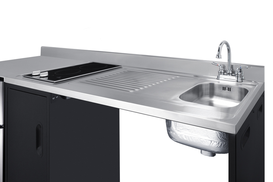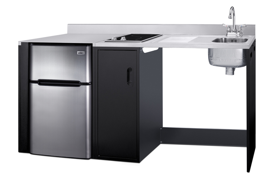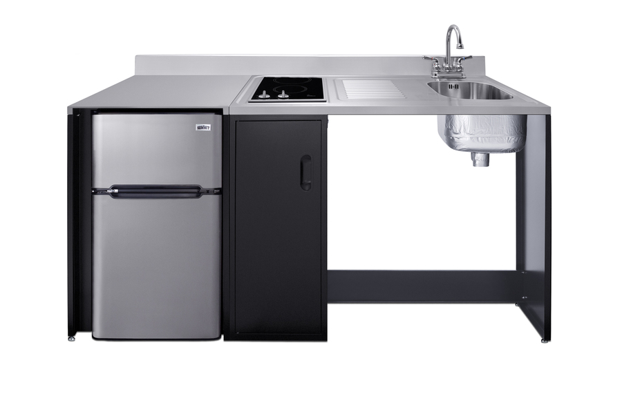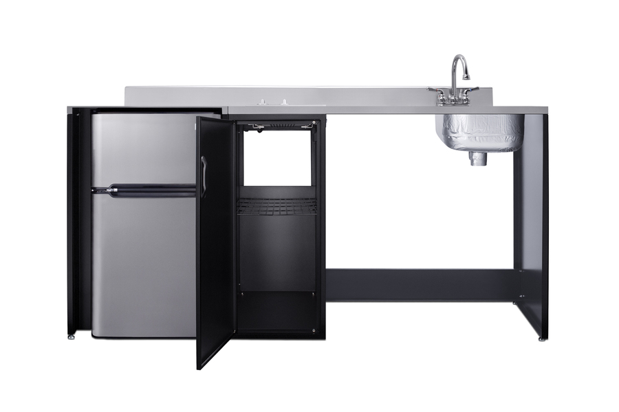 Summit brings true convenience and accessibility to smaller spaces with our collection of barrier-free, all-in-one combination kitchenettes. Available in a variety of sizes and finishes, these units come fully featured with everything you need for the ultimate home foodservice experience, including a 2-burner smooth-top cooktop, sink, storage cabinets, refrigerator with a freezer compartment, and a design that thoughtfully considers movement/flow, force needs, and mobility limitations. The CK72ADARBF is a 72" wide all-in-one compact kitchenette with a 34" ADA-compliant counter height and a barrier-free design for added wheelchair accessibility. It has a 31.88" wide open area under the sink to ensure adequate space for wheelchairs. This unit is designed, but not limited to, users with mobility impairments, such as those who use wheelchairs, users who are temporarily impaired, or recovering from a procedure, and can benefit from increased accessibility and enhanced ease of use when accessing the unit’s sink, cooktop, and storage cabinet. Located on the right side of the CK72ADARBF is the stainless steel sink, complete with a gooseneck faucet. Next to the sink is a stainless steel counter area for food prep. On the other side of the prep area is a built-in, 115V smooth-top cooktop with a rear 7" 900W and a front 5½" 500W heating element. This cooktop features upfront, ADA-compliant controls and helpful indicator lights. The standard power cord comes pre-installed for easy setup. In the middle of the unit are two single-door cabinets that include removable wire shelves, perfect for storing cleaning supplies. Unlike many other brands' kitchenettes, all Summit units include a refrigerator with a freezer compartment to cover all of your cold storage needs. The CK72ADARBF includes the two-door, ENERGY STAR certified CP34BSS, with 3.2 cu.ft. of storage space. A dual evaporator system separately cools the auto defrost refrigerator section and manual defrost freezer compartment for improved overall performance. This refrigerator-freezer also includes an adjustable glass shelf, door storage, and a crisper. The CK72ADARBF ships fully assembled in one box. Two grooved handles on each side allow for easy movement of the unit. Perfect for studio apartments, hotel rooms, dormitories, assisted living facilities, temporary kitchen facilities, and any other location in need of a fully-featured compact kitchenette featuring wheelchair accessibility. For this unit with a sink located on the left of the kitchenette, see the CK72ADALBF. For this unit without the barrier-free design, see the CK72ADASINKR. Additional choices with premium wood construction will be available soon. Browse the full Summit lineup to explore your options.