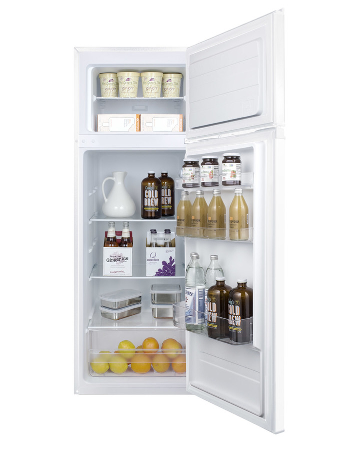 SUMMIT carries a quality line of uniquely sized refrigerator-freezers specially designed for space-challenged kitchens. Less than 22" wide and 56" high, the CP962 offers a generous 7.1 cu.ft. storage capacity in a slim fit that also meets standards for ADA compliance. This unit comes in a white finish, with a sealed back design to ensure easier cleanup. The door swing is user-reversible, making it easy to adjust the unit to best accommodate your setup. Inside, the CP962 utilizes low maintenance automatic defrost in the refrigerated section and static manual defrost in the freezer. The fresh food section comes fully featured with interior lighting, spill-proof adjustable glass shelves, a large clear crisper, and door storage. The freezer compartment includes a removable wire shelf for added storage convenience. With its lean size, the CP962 is the ideal refrigerator for studio apartments, yachts, offices, and other settings in need of reliable cooling in a slim-fitting footprint.
