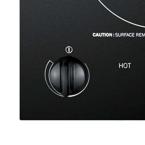 Summit's selection of European radiant cooktops brings reliable heating to a variety of slimmer living spaces, from hotel suites to apartment kitchens. The CR1115 is a single burner 115V cooktop designed for built-in installation in 11 1/8" wide by 11 7/8" deep counters. Made from Eurokera ceramic glass, the CR1115 offers modern style and convenience with an easy-to-clean jet black cooking surface. The 1200W radiant element features a 6" diameter, manufactured in Germany by E.G.O. An upfront push-to-turn control knob provides infinite heat control and a residual heat light indicates when the surface is still hot. This unit requires professional hard-wiring or installation of a NEMA 5-15P cord. Perfect as an extra burner in kitchens, or for mobile homes, hotel rooms, and other smaller spaced areas with specific heating needs. Additional choices are available in 2, 3, 4, and 5-burner configurations.