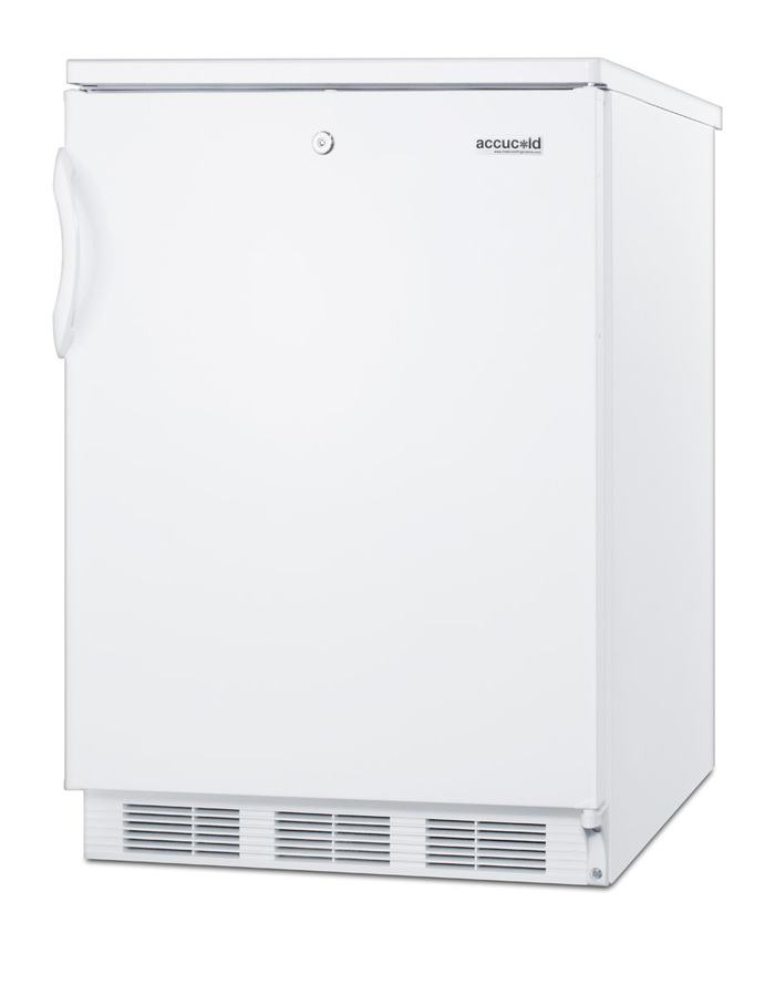 Accucold by Summit Appliance offers a wide range of counter height refrigeration for general purpose storage. The CT66JADA Series includes freestanding refrigerator-freezers designed for optimum storage conditions and sized for use in settings complying with ADA guidelines. At 32" high, the CT66LWADA is designed for freestanding use in ADA compliant facilities. The 24" footprint offers over 5 cu.ft. of storage capacity. This model features a white exterior finish and a user-reversible door swing. A factory installed front lock offers convenient safety. Inside, our unique dual evaporator system separately cools the refrigerator and freezer sections to ensure proper storage temperature. Cycle defrost operation reduces user maintenance in the automatic defrost fresh food section, with static manual defrost operation in the freezer compartment. Door storage provides easy access for tall bottles and small condiments. Additional features include adjustable shelves, a clear crisper, and automatic interior lighting. The CT66LWADA has long proven itself to have one of the best temperature performance records in the industry. To see additional finish options on this unit, browse the full CT66WADA Series. For built-in undercounter applications, see the CT66LWBIADA. Note: This product is intended for a wide variety of basic storage applications. Storage of high-value vaccines, life science materials, and medical/clinical biologicals require a product offering tighter temperature control and/or alarms, monitoring, and backup. For more information, browse Accucold's purpose-built line or contact our product specialists at 1-888-4-MED-LAB.
