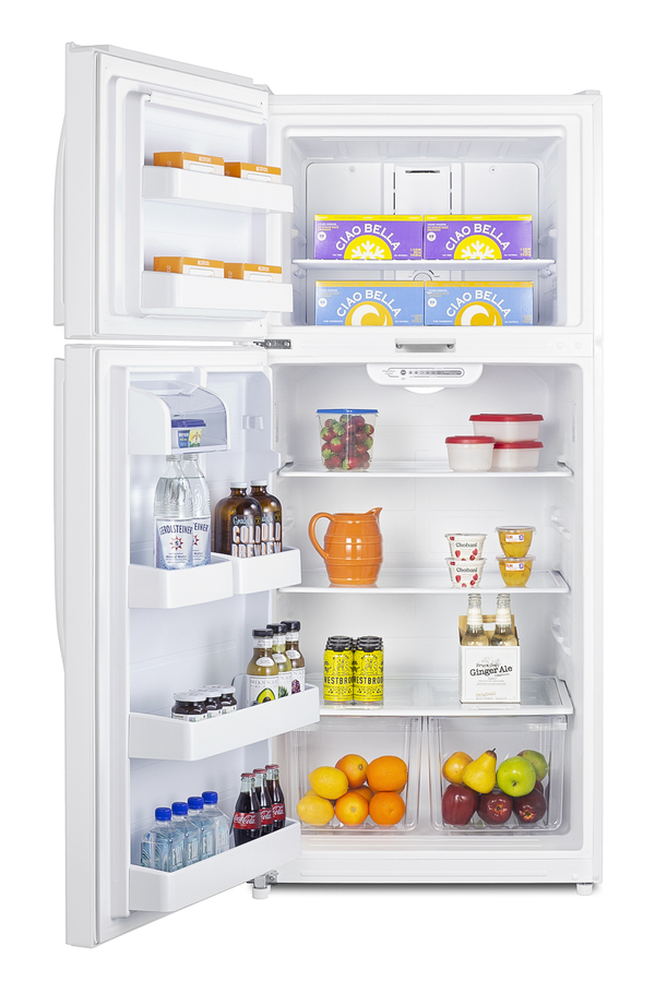 SUMMIT's selection of top freezer refrigerators offers true convenience for every kitchen, including break rooms and other general purpose facilities. The CTR18WLLF2LHD is a full-sized refrigerator-freezer. The large interior offers 18 cu.ft. of storage capacity, with frost-free operation for low maintenance use. It comes in a textured white cabinet complete with easy to grab handles. We include a factory-installed lock that secures both the refrigerator and freezer section with a single dial combination. A key override is included in case of lost codes. This unit ships with a left hand door swing. Inside, the CTR18WLLF2LHD includes adjustable glass shelves in the refrigerator compartment and two clear crispers. The door features full-sized storage racks, including one that holds full gallon containers. Two half-sized door racks are adjustable to accommodate different sized items, with an additional fixed butter dish. The upper freezer compartment comes with a full-width wire shelf and two door bins. This unit includes an automatic interior LED light and easy-to-use interior thermostat. In addition to this model, Summit manufactures a variety of refrigerators for a wide variety of applications. Browse the full catalog to explore our full product line.
