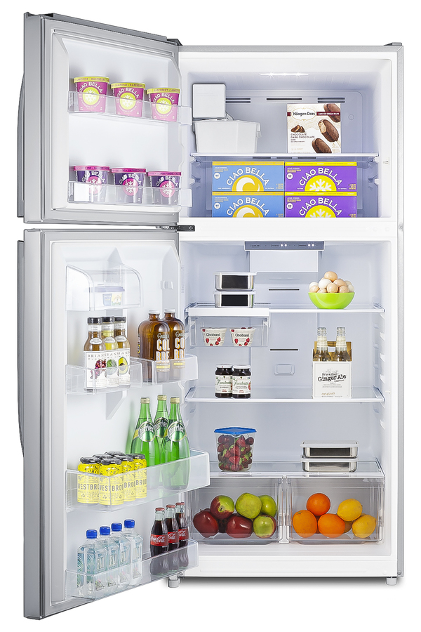 SUMMIT's selection of top freezer refrigerators offers true convenience for every kitchen, including break rooms and other general purpose facilities. The CTR21PLIMLHD is a full-sized refrigerator-freezer. The large interior offers 20.5 cu.ft. of storage capacity, with frost-free operation for low maintenance use. It comes in a textured gray cabinet fingerprint-free doors that offer the look of stainless steel without the constant cleanup. This unit ships with a left hand door swing. Inside, the CTR21PLIMLHD includes adjustable glass shelves in the refrigerator compartment and two clear crispers. The door features full-sized storage racks, including one that holds full gallon containers. Two half-sized door racks are adjustable to accommodate different sized items, with an additional fixed butter dish. The upper freezer compartment comes with a full-width wire shelf and two door bins, as well as a factory-installed icemaker. This unit includes an automatic interior LED light and easy-to-use interior thermostat. In addition to this model, Summit manufactures a variety of refrigerators for a wide variety of applications. Browse the full catalog to explore our full product line.