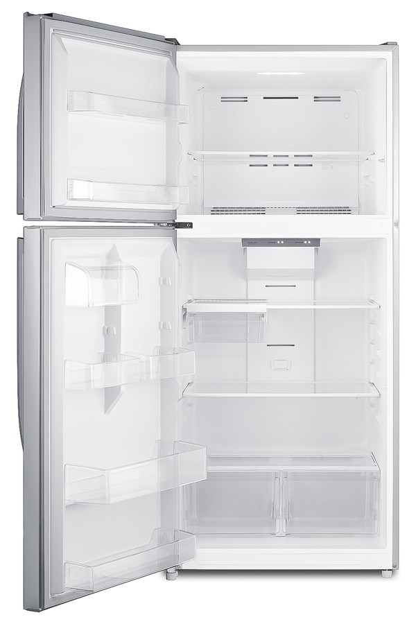 SUMMIT's selection of top freezer refrigerators offers true convenience for every kitchen, including break rooms and other general purpose facilities. The CTR21PLLHD is a full-sized refrigerator-freezer. The large interior offers 20.5 cu.ft. of storage capacity, with frost-free operation for low maintenance use. It comes in a textured gray cabinet with fingerprint-free doors that offer the look of stainless steel without the constant cleanup. This unit comes with a left hand door swing. Inside, the CTR21PLLHD includes adjustable glass shelves in the refrigerator compartment and two clear crispers. The door features full-sized storage racks, including one that holds full gallon containers. Two half-sized door racks are adjustable to accommodate different sized items, with an additional fixed butter dish. The upper freezer compartment comes with a full-width wire shelf and two door bins. This unit includes an automatic interior LED light and easy-to-use interior thermostat. In addition to this model, Summit manufactures a variety of refrigerators for a wide variety of applications. Browse the full catalog to explore our full product line.