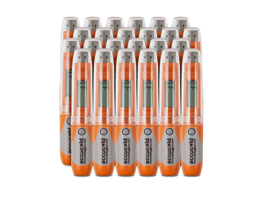 Accucold offers a range of user-friendly options for versatile and reliable temperature logging. The DLSA11-24P is a set of 24 DLSA11 standalone temperature loggers ideal for use when transporting items that need to be monitored. The compact size makes it easy to place in the logged area without compromising capacity. The logger includes an LCD screen with a digital display of the temperature to the nearest tenth of a degree, as recommended by the CDC for vaccine storage. You can also view the average temperature and mean kinetic temperature, a simplified way of showing the overall effect of temperature fluctuation during the recording period. This unit includes a protective transparent case that allows you to view the data without disrupting recording. Designed for use with Windows-based platforms, the DLSA11 includes downloadable software that is easy to program to your specific needs. Users can set the recording interval from every 10 seconds to 24 hours and specify whether to display the temperature in Celsius or Fahrenheit. Users can also choose to set a minimum/maximum temperature alarm that will show a visual indicator alert if the temperature goes out of range. These readings will be color-coded in the data exports for easy analysis. The logger offers an accuracy range of .5ºC in the temperature range of -20 to 40ºC, and 1ºC outside of this range. It records all data to the internal USB drive and can hold up to 32,000 readings. When you're ready to view your data, simply plug your logger into your computer and open the software in Excel, Adobe Illustrator, or PDF format. From there, you can easily view and export the data in graphical or tabular form. All DLSA11CAL loggers include a replaceable lithium battery and a low battery alert on the LCD display. For these loggers calibrated to NIST standards, see the DLSA11CAL-24P. There is a two week lead time for calibration services.