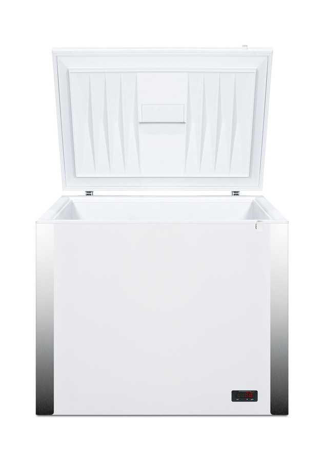 EQTemp carries a quality line of frost-free chest freezers designed for low maintenance general purpose storage in laboratories and other institutions. The EQFF72 offers 8 cu.ft. of storage. An externally mounted digital thermostat ensures easy temperature management, with fan-forced cooling to help ensure more even temperature distribution inside. Frost-free operation ensures minimum user maintenance, eliminating the need to defrost the interior. A removable basket is included for storage convenience. This unit comes in a white exterior finish with stainless steel corner protectors that help protect the front of the freezer in busy settings. We include a hospital grade 'green dot' cord that won't be easily dislodged from the wall socket. A keyed lock offers additional storage security, while the foamed counterbalanced hinge ensures proper insulation and safer loading. A factory-installed access port is included to allow facilities to connect their own monitoring equipment. The EQFF72 is UL-S listed to NSF-7 commercial sanitation standards. For a matching frost-free chest refrigerator, see the EQFR71. Note: This product is intended for a wide variety of basic storage applications. Storage of high-value vaccines, life science materials, and medical/clinical biologicals require a product offering tighter temperature control and/or alarms, monitoring, and backup. For more information, browse Accucold's purpose-built line or contact our product specialists at 1-888-4-MED-LAB.
