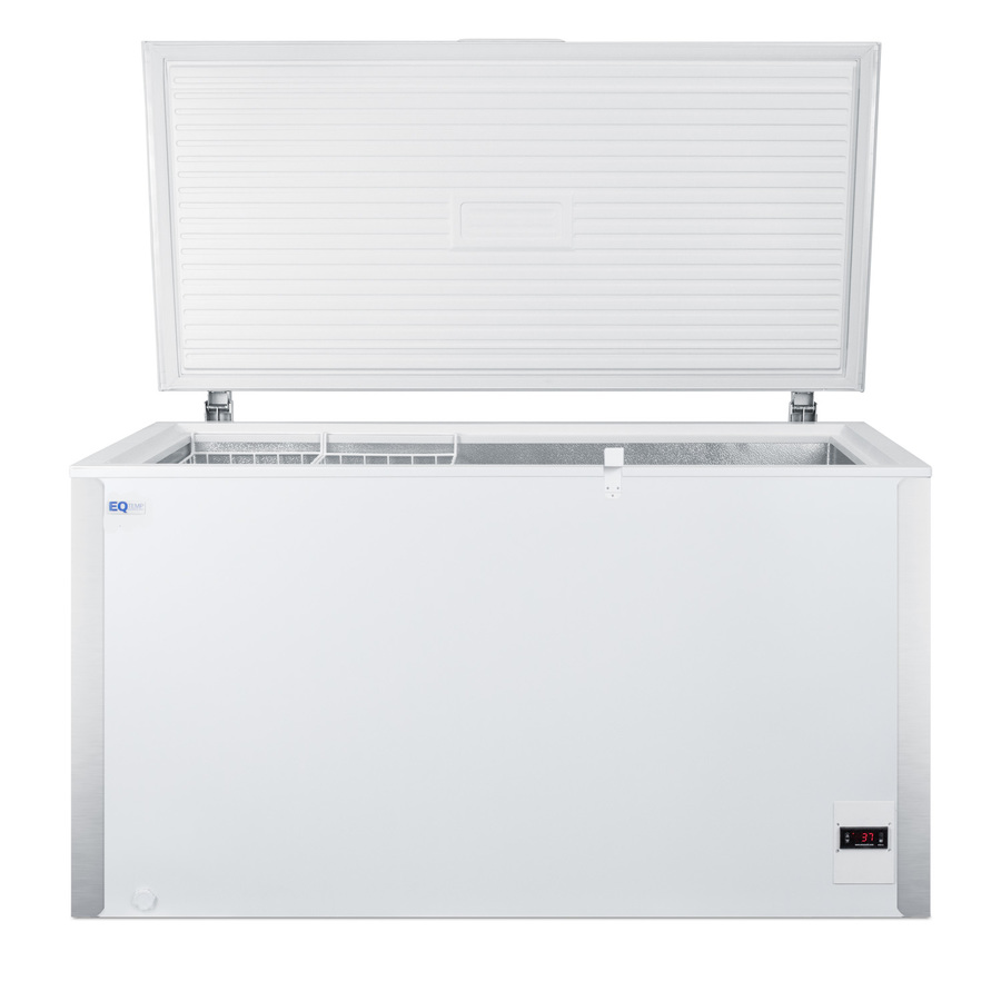 EQTemp carries a quality line of frost-free chest refrigerators designed for low maintenance general purpose storage in laboratories and other institutions. The EQFR121 offers 13.1 cu.ft. of storage. An externally mounted digital thermostat ensures easy temperature management, with fan-forced cooling to help ensure more even temperature distribution inside. Frost-free operation ensures minimum user maintenance, eliminating the need to defrost the interior. Removable baskets are included for storage convenience. This unit comes in a white exterior finish with stainless steel corner protectors that help protect the front of the refrigerator in busy settings. We include a hospital grade 'green dot' cord that won't be easily dislodged from the wall socket. A keyed lock offers additional storage security, while the foamed counterbalanced hinging ensures proper insulation and safer loading. A factory-installed access port is included to allow facilities to connect their own monitoring equipment. The EQFR121 is UL-S listed to NSF-7 commercial sanitation standards. For a matching frost-free chest freezer, see the EQFF122. Note: This product is intended for a wide variety of basic storage applications. Storage of high-value vaccines, life science materials, and medical/clinical biologicals require a product offering tighter temperature control and/or alarms, monitoring, and backup. For more information, browse Accucold's purpose-built line or contact our product specialists at 1-888-4-MED-LAB.
