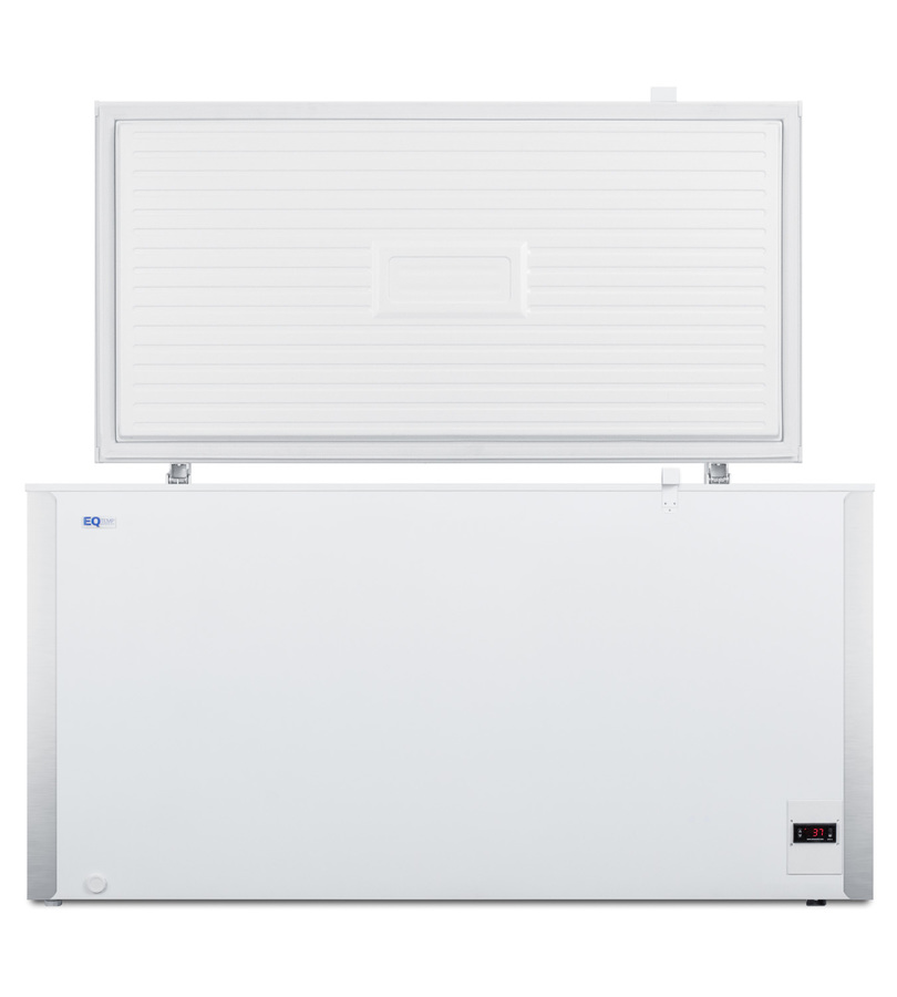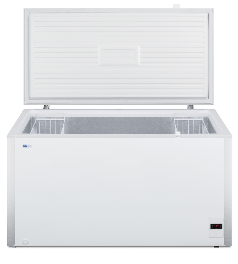 EQTemp carries a quality line of frost-free chest refrigerators designed for low maintenance general purpose storage in laboratories and other institutions. The EQFR151 offers 17 cu.ft. of storage. An externally mounted digital thermostat ensures easy temperature management, with fan-forced cooling to help ensure more even temperature distribution inside. Frost-free operation ensures minimum user maintenance, eliminating the need to defrost the interior. Removable baskets are included for storage convenience. This unit comes in a white exterior finish with stainless steel corner protectors that help protect the front of the refrigerator in busy settings. We include a hospital grade 'green dot' cord that won't be easily dislodged from the wall socket. A keyed lock offers additional storage security, while the foamed counterbalanced hinging ensures proper insulation and safer loading. A factory-installed access port is included to allow facilities to connect their own monitoring equipment. The EQFR151 is UL-S listed to NSF-7 commercial sanitation standards. For a matching frost-free chest freezer, see the EQFF152. Note: This product is intended for a wide variety of basic storage applications. Storage of high-value vaccines, life science materials, and medical/clinical biologicals require a product offering tighter temperature control and/or alarms, monitoring, and backup. For more information, browse Accucold's purpose-built line or contact our product specialists at 1-888-4-MED-LAB.