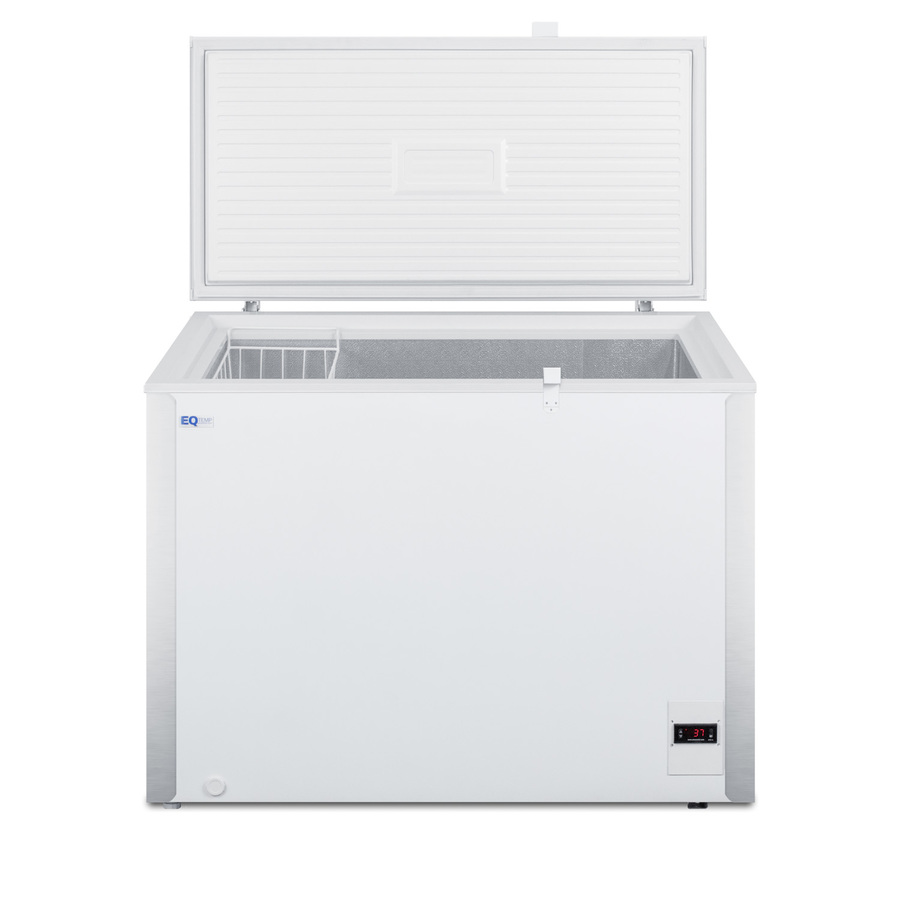 EQTemp carries a quality line of frost-free chest refrigerators designed for low maintenance general purpose storage in laboratories and other institutions. The EQFR71 offers 8 cu.ft. of storage. An externally mounted digital thermostat ensures easy temperature management, with fan-forced cooling to help ensure more even temperature distribution inside. Frost-free operation ensures minimum user maintenance, eliminating the need to defrost the interior. A removable basket is included for storage convenience. This unit comes in a white exterior finish with stainless steel corner protectors that help protect the front of the refrigerator in busy settings. We include a hospital grade 'green dot' cord that won't be easily dislodged from the wall socket. A keyed lock offers additional storage security, while the foamed counterbalanced hinging ensures proper insulation and safer loading. A factory-installed access port is included to allow facilities to connect their own monitoring equipment. The EQFR71 is UL-S listed to NSF-7 commercial sanitation standards. For a matching frost-free chest freezer, see the EQFF72. Note: This product is intended for a wide variety of basic storage applications. Storage of high-value vaccines, life science materials, and medical/clinical biologicals require a product offering tighter temperature control and/or alarms, monitoring, and backup. For more information, browse Accucold's purpose-built line or contact our product specialists at 1-888-4-MED-LAB.