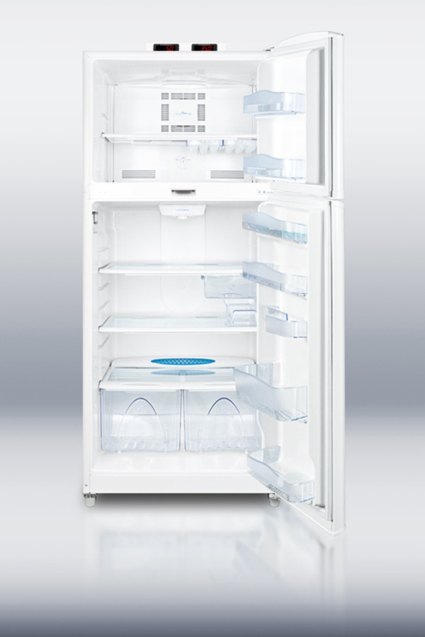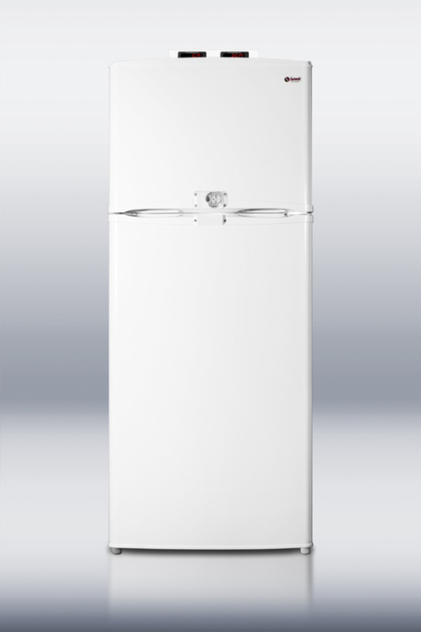 SUMMIT FF1620DTLLFT2 is a dual temperature refrigerator-freezer built for full sized storage with reliable temperature precision in medical facilities. The FF1620DTLLF2 features 15.8 cu.ft. storage capacity inside a unique 29 ¼" W x 26 ½" D counter depth footprint. Digital thermostats ensure accurate temperature management, with a digital readout of the temperature for the refrigerator and freezer. This unit is fully frost-free and includes an interior fan. A front combination lock (with key override) secures both sections. Inside, the FF1620DTLLF2 includes adjustable glass shelves. Additional features include interior lighting, multiple crisper drawers, and door storage in both the refrigerator and freezer section.