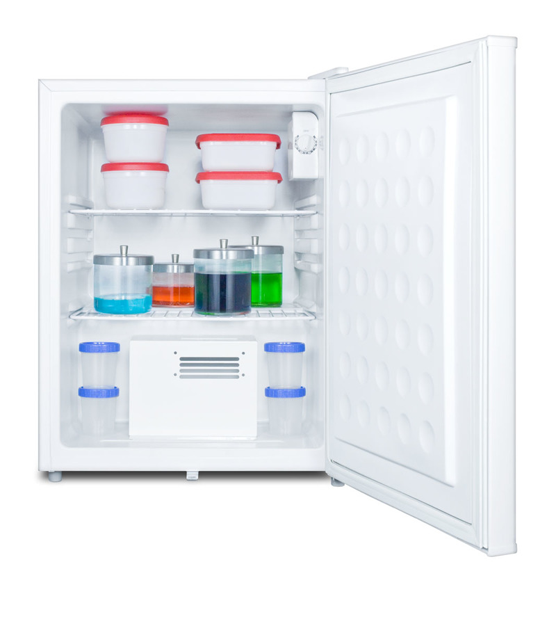 Accucold by Summit Appliance's FF28LWH is a compact automatic defrost all-refrigerator ideally sized for countertop use. Sized just under 19" wide and 25" high, the FF28LWH offers 2.4 cu.ft. of storage capacity in a compact footprint. The interior includes one full-size adjustable wire shelf, one removable half shelf, and a flat door liner. The FF28LWH uses automatic defrost for low maintenance operation, with an adjustable mechanical thermostat conveniently located towards the front for easy access. The reversible door includes a factory installed lock. Note: Accucold's general purpose refrigerators are intended for a wide variety of basic storage of non-critical products. For storage of high-value vaccines, life science materials, and medical or clinical biologicals, browse Accucold's Medical & Laboratory or Pharmacy & Vaccine Storage categories, or contact our product specialists to discuss your options at 1-888-4-MED-LAB.