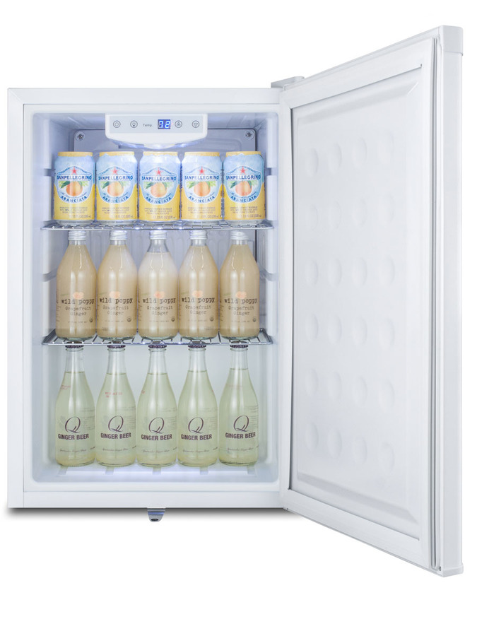 SUMMIT COMMERCIAL offers a quality line of compact refrigeration designed and constructed for reliable use in commercial applications. The FF31L7BI is a compact all-refrigerator that can be used built-in or freestanding. The commercial design meets UL-471 electrical standards. The unit comes in a white exterior finish with a reversible door. A factory installed front lock offers keyed security, while the rear features a sealed metal cover for improved sanitation. Inside, the 2.5 cu.ft. FF31L7BI utilizes automatic defrost operation for low maintenance use. Four removable chrome shelves offer convenient storage, while the flat door liner allows you to store deeper items. The digital thermostat is located inside and can be managed in Celsius or Fahrenheit. Interior LED lighting offers an attractive, energy efficient view of the interior in a soft blue hue. With its ideal dimensions and user-friendly features, the FF31L7BI offers added convenience to the usual compact refrigerator. Note: This product is intended for a wide variety of basic storage applications. Storage of high-value vaccines, life science materials, and medical/clinical biologicals require a product offering tighter temperature control and/or alarms, monitoring, and backup. For more information, browse Accucold's purpose-built line or contact our product specialists at 1-888-4-MED-LAB.