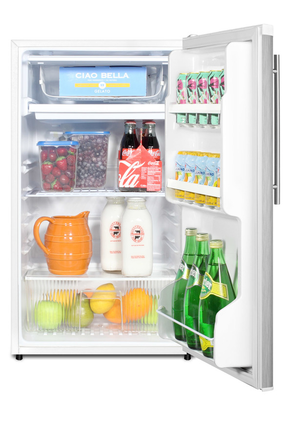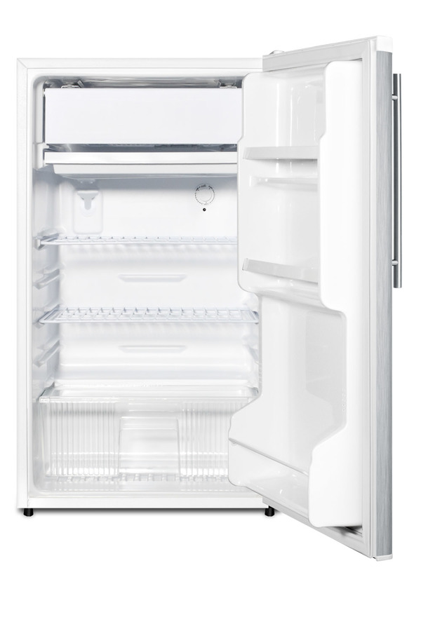 SUMMIT's FF412ESSSHVADA brings an ENERGY STAR qualified performance to a compact freestanding refrigerator-freezer specially designed with an ADA compliant counter height. Perfectly sized at just 18 ¾" wide, the FF412ESSSHVADA is 32" high for use in settings that require lower ADA compliant counters. This unit has a white cabinet with a fully wrapped stainless steel door. A sleek stainless steel handle completes the professional look. Inside, the FF412ESSSHVADA uses automatic defrost to reduce maintenance in both the refrigerator and freezer section. Adjustable shelves, door storage, and a crisper make storage simple inside the 3.6 cu.ft. interior. All SUMMIT's FF412ES series units are built in North America and come with a proven history of reliability and customer satisfaction. Additional choices are available with stainless steel doors. For the same unit with a black cabinet, see the FF433ESSSHVADA. NOTE: Due to its timer-based auto defrost system, this model is not designed for vaccine or medical storage.
