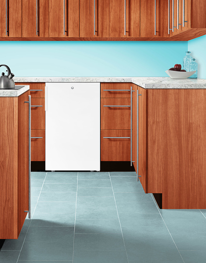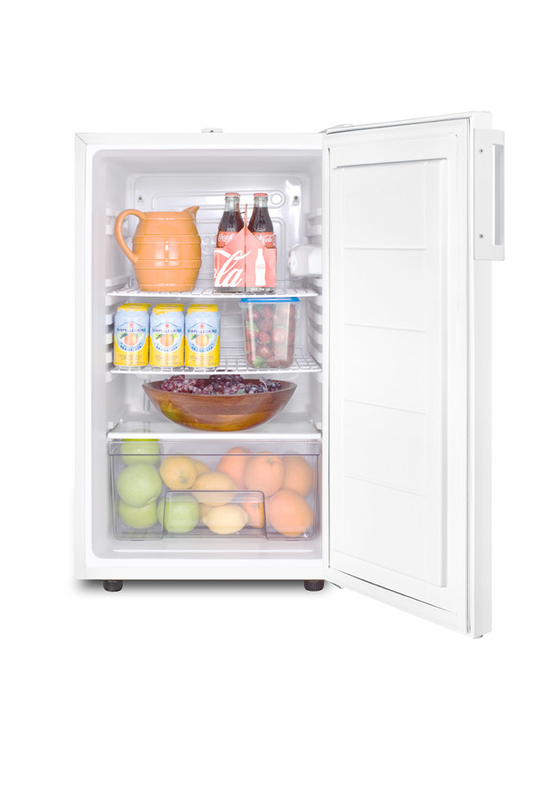 Accucold by Summit Appliance offers a wide range of counter height all-refrigerators for general purpose storage. The FF511L Series features high performing 20" wide all-refrigerators designed for freestanding use. The FF511L features a full 4.1 cu.ft. capacity. This all-white refrigerator includes a reversible door with an easy-to-clean flat interior liner. A factory installed lock is located at the top of the door for convenient security. Inside, this auto defrost refrigerator includes three adjustable wire shelves. A bottom crisper drawer offers added storage options. Additional features include an adjustable thermostat and a switchable interior light. At just 20" wide, the FF511L is ideal for any facility in need of reliable general purpose cooling. Note: This product is intended for a wide variety of basic storage applications. Storage of high-value vaccines, life science materials, and medical/clinical biologicals require a product offering tighter temperature control and/or alarms, monitoring, and backup. For more information, browse Accucold's purpose-built line or contact our product specialists at 1-888-4-MED-LAB.