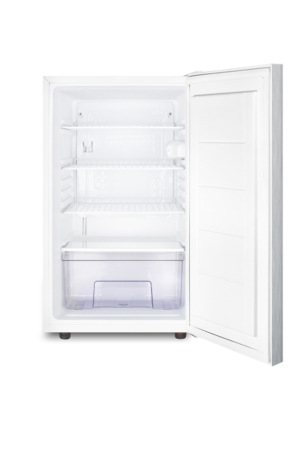 Accucold by Summit Appliance offers a wide range of counter height all-refrigerators designed for general purpose non-household storage. Model FF511LWXSSHH is an all-refrigerator sized just under 20" wide, with a generous 4.1 cu.ft. capacity. This freestanding unit comes with a white exterior cabinet and user-reversible stainless steel wrapped door complete with a thin horizontally mounted pro style handle. Inside, this auto defrost refrigerator includes three adjustable wire shelves. A removable lower drawer offers added storage options as needed. This unit has a flat door liner to accept deeper trays. The interior light operates by an on/off rocker switch located next to the dial thermostat. At just 20" wide, the FF511LWXSSHH is ideal for any facility in need of reliable general purpose cooling. It can be paired with the matching FS407LWXSSHH freezer. Additional options with more regulated temperature stability are also available, as well as residential choices from 12" to 36" wide. Browse the complete Summit and Accucold lineup to explore our full selection of undercounter refrigeration. Note: This product is intended for a wide variety of basic storage applications. Storage of high-value vaccines, life science materials, and medical/clinical biologicals require a product offering tighter temperature control and/or alarms, monitoring, and backup. For more information, browse Accucold's purpose-built line or contact our product specialists at 1-888-4-MED-LAB.