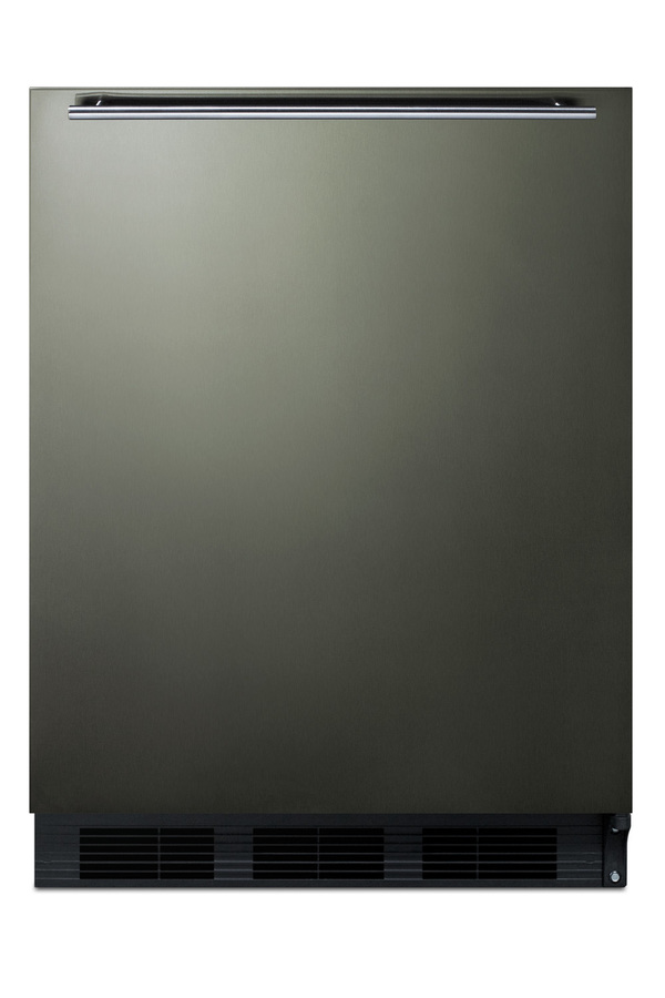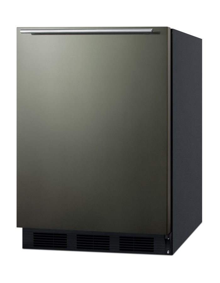 SUMMIT offers the industry’s largest selection of ADA compliant built-in undercounter refrigeration, with a range of choices to best meet the needs of any home or facility with height limitations. The FF63BBIADA Series includes fully featured all-refrigerators for built-in or freestanding use in residential settings. Sized with a 24" footprint, the FF63BKBIKSHHADA is front-breathing for built-in use. At 32" high, it's perfect for installation under lower ADA compliant counters. The fully finished cabinet also allows freestanding use for added versatility, with a user-reversible door for added flexibility. The FF63BKBIKSHHADA comes in our new black stainless steel finish from our exclusive basalt collection. The wrapped door is made from 304 grade stainless steel with a high gloss finish in a neutral hue to perfectly accent or complement your kitchen design. The door is strongly resistant to most fingerprints and can easily be wiped clean with a dry cloth. Our signature thin handle in brushed stainless steel is mounted horizontally to complete the modern look. Inside, the FF63BKBIKSHHADA utilizes automatic defrost operation to ensure minimum user maintenance. The 5.5 cu.ft. interior offers more storage space than most models in this size class. Adjustable glass shelves ensure spill-proof storage, while a large crisper drawer is ideal for keeping produce at its best. A removable wine shelf lets you keep bottles securely in place. The door includes three storage racks for condiments and tall bottles. The seamless interior also features a dial thermostat and automatic light. Designed and constructed in Europe, the FF63BKBIKSHHADA brings reliable cold storage to any setting in need of a quality refrigerator in an ADA compliant height. NOTE: Black stainless steel may vary slightly in appearance from the image displayed, as it has a reflective quality that can be affected by surrounding colors and textures. Summit's black stainless steel comes with a high gloss finish and is not designed as a direct match to other brands.