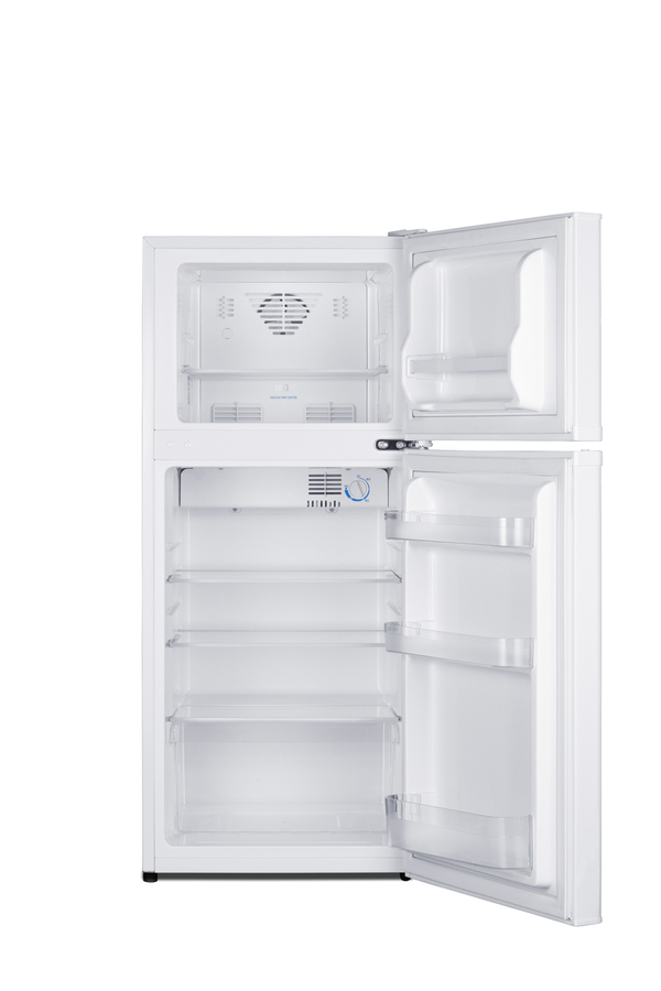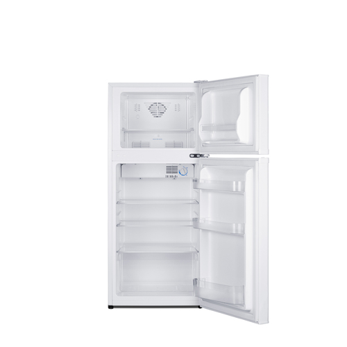 Inside, the FF712W utilizes frost-free operation to minimize user maintenance. Both the refrigerator and freezer include door racks for easy storage. The fresh food section also features a large crisper drawer, interior LED lighting, and adjustable glass shelves. The freezer features one removable shelf. An easy to use, analog control panel is located inside both sections, allowing for intuitive temperature adjustments.