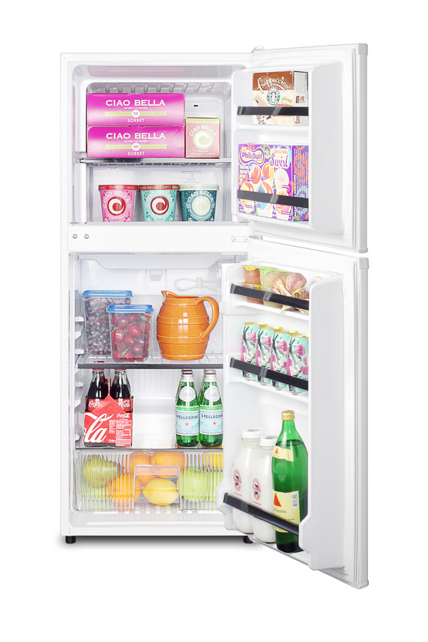 SUMMIT's ENERGY STAR qualified collection of mid-sized refrigerator-freezers offers uniquely sized units with energy efficient performances. Made in North America, the FF71ES is sized just under 19" wide, with a 46" height that meets ADA guidelines to provide accessibility to wheelchair users. It features a textured white finish with reversible doors for added flexibility. Inside, the FF71ES utilizes frost-free operation to minimize user maintenance. Both the refrigerator and freezer include door racks for easy storage. The fresh food section also features a large crisper drawer, interior lighting, and adjustable shelves. The compact freezer includes one removable shelf. With its ENERGY STAR performance and compact fit, the FF71ES is the ideal refrigerator for smaller housing units, offices, dorms, and other space-restricted kitchens. We also offer this unit with a pedestal that raises the height by 12" to put the interior in easier reach for those with mobility challenges, such as assisted living residents. See the PED12 for more information.