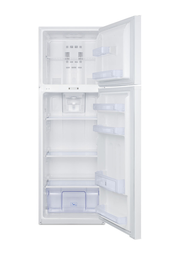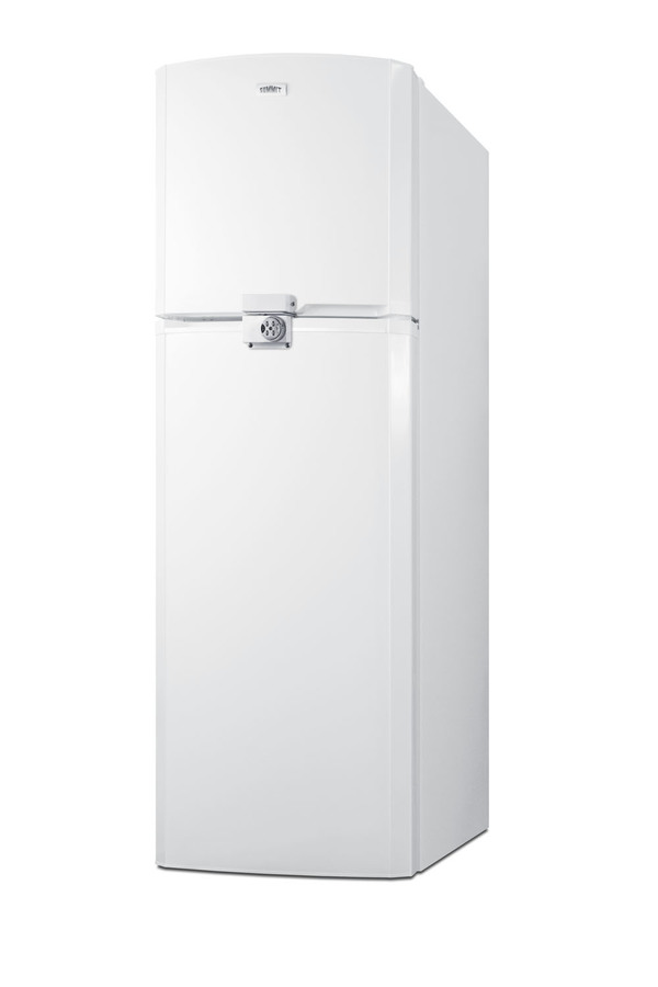 SUMMIT's thin-line collection of frost-free refrigerator-freezers brings quality and convenience to a variety of smaller kitchens, including break rooms and other institutional spaces. The FF946WLLF2 offers a full 8.8 cu.ft. capacity inside a slim fit, with a unique curved door design for added style. The fresh food section includes adjustable glass shelves for spill-proof storage and easy cleaning, with a large tilt-out crisper and four door racks to help keep your refrigerator organized. The large freezer section features a removable wire shelf and two door racks for added convenience. Made in North America, the FF946WLLF2 comes in a clean white exterior finish. A combination lock is factory-installed in the front to secure both sections. We include a key that can override the combination if needed. For this unit in white, see the FF946WLLF2. NOTE: Because of this unit's curved door style, the FF946WLLF2 requires an additional 1 3/4" of width to open the doors to a full 90º. If placing this unit against a right angle wall, be sure to accommodate this extra space.