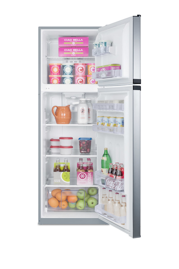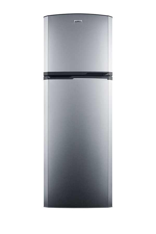 SUMMIT's thin-line collection of frost-free refrigerator-freezers brings quality and convenience to even the smallest kitchen space. The FF948SS offers a full 8.8 cu.ft. capacity inside a slim fit, with a unique curved door design for added style. The fresh food section includes adjustable glass shelves for spill-proof storage and easy cleaning, with a large tilt-out crisper and four door racks to help keep your refrigerator organized. The large freezer section includes a removable wire shelf and two door racks for added convenience. Made in North America, the FF948SS includes reversible stainless steel doors and a platinum cabinet. To add a factory installed icemaker, order FF948SSIM. For this unit in white, see the FF946W. NOTE: Because of this unit's curved door style, the FF948SS requires an additional 1 3/4" of width to open the doors to a full 90º. If placing this unit against a right angle wall, be sure to accommodate this extra space.