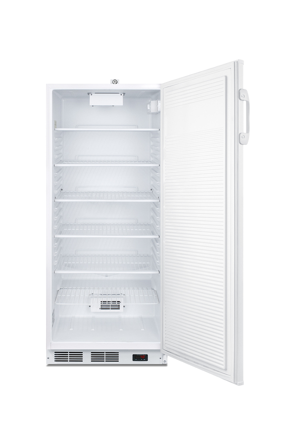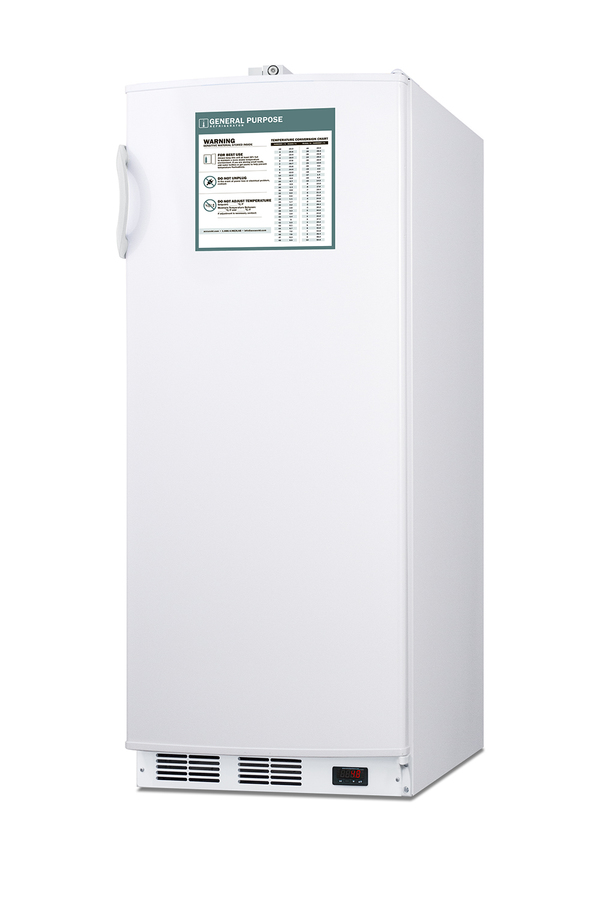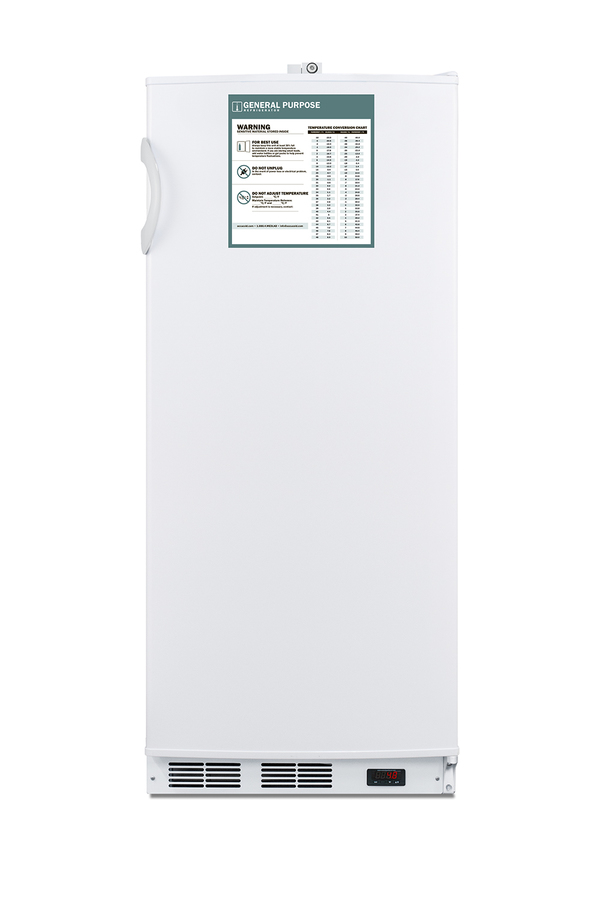 Accucold's series of general purpose refrigeration includes a variety of choices ideal for use in healthcare applications. The FFAR10GP is a full-size all-refrigerator designed to offer an improved performance over similarly sized dorm fridges and residential units. This model features a white exterior and keyed lock located towards the top of the door for convenient access (NOTE: if you prefer the lock located on the side of the unit, specify when ordering). A digital thermostat is located in the kickplate for easy temperature management. This unit is designed for freestanding use. Inside, the FFAR10GP contains over 10 cu.ft. of storage capacity in a conveniently sized 24" footprint. Four adjustable wire shelves and a crisper drawer offer flexible storage options. Automatic defrost saves on user maintenance, while an internal fan helps to ensure air circulation throughout the interior. Interior lighting makes viewing contents easy. The FFAR10GP is a convenient solution to general purpose cold storage applications. Additional general purpose choices are available as freezers and in compact, undercounter, ADA compliant sizes. Note: Accucold's general purpose series refrigerators are intended for a wide variety of basic storage of non-critical products. For storage of high-value vaccines, life science materials, and medical or clinical biologicals, browse Accucold's Medical & Laboratory or Pharmacy & Vaccine Storage categories, or contact our product specialists to discuss your options at 1-888-4-MED-LAB.