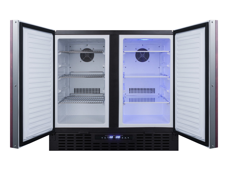 SUMMIT brings quality and value under the counter with the industry’s largest collection of built-in refrigeration. The FFRF36IF features a versatile design that meets NSF-7 and UL-471 commercial standards but is also approved for residential use. Sized at 36" wide, this all-in-one, side-by-side refrigerator-freezer is designed for built-in or freestanding installation. The two doors feature an integrated stainless steel frame designed to accept full panel overlays, allowing users to seamlessly blend the unit into their own cabinetry design (panel size: 27 7/8" H x 17 9/16" W; 3/4" thick with a maximum weight of 10 lbs.). Users must supply their own door handle. The digital controls are located in the kickplate, allowing you to adjust the temperature without opening the door. This unit has a sealed back design to enable easier cleanup and added space savings. Inside, the FFRF36IF features a 2.9 cu.ft. frost-free freezer compartment on the left and a 2.9 cu.ft. frost-free refrigerator compartment on the right. Both sections are frost-free for easy maintenance, with internal fans to help provide even cooling. The refrigerator compartment includes three adjustable glass shelves with five placement options that offer multiple spill-proof storage options. The freezer compartment includes three adjustable chrome shelves for proper cold air circulation. Additionally, the freezer section can be converted to run as a refrigerator, allowing you to adjust the temperature range to best accommodate your storage needs at the touch of a button. With its innovative all-in-one design, user-friendly features, and frost-free operation, the FFRF36IF is a great choice for smaller kitchens looking to maximize storage space.
