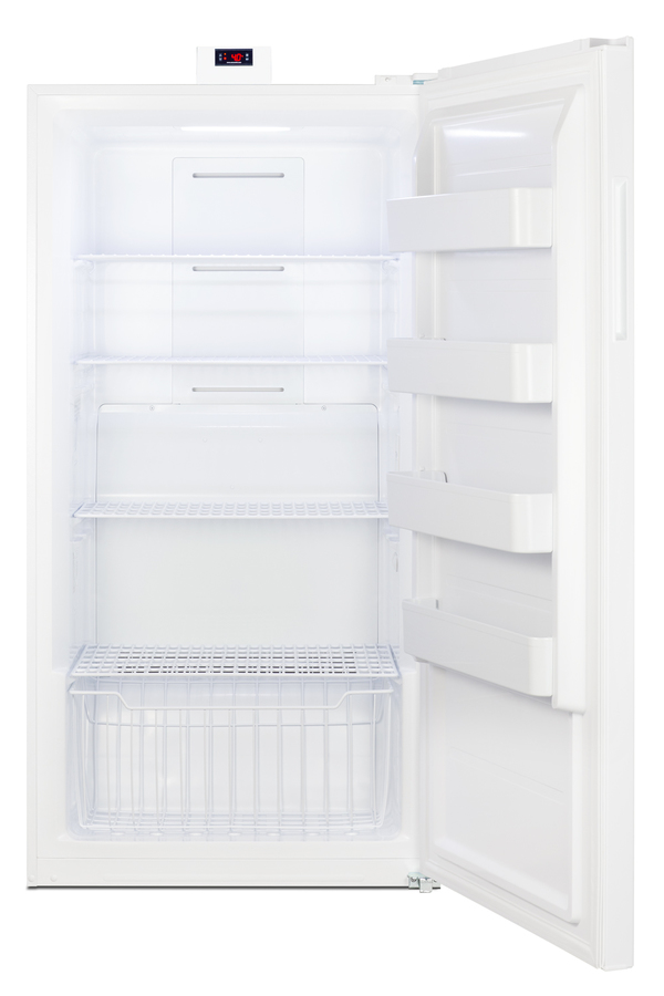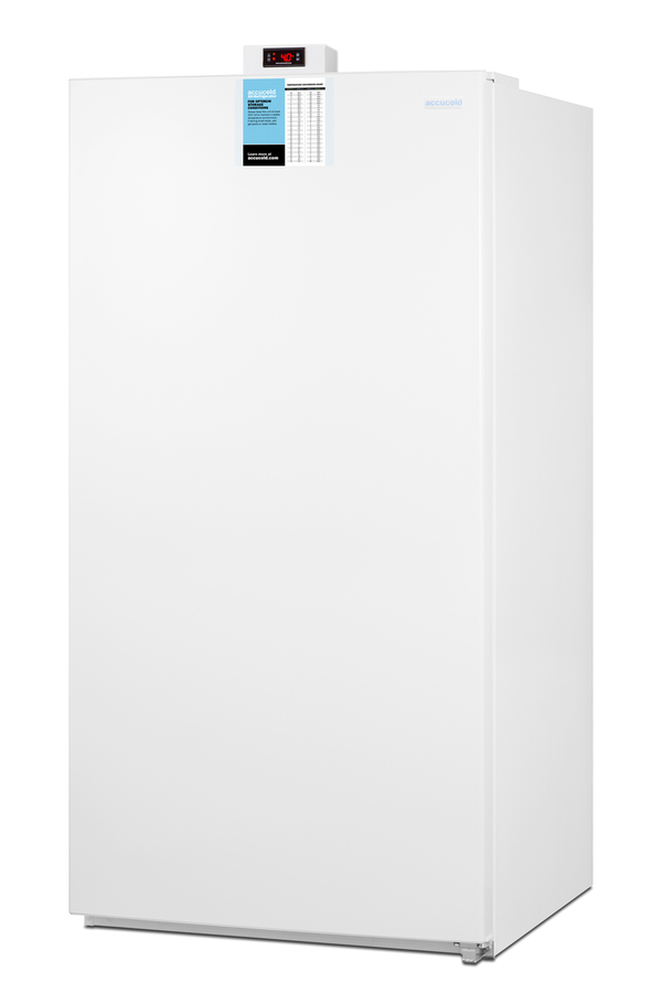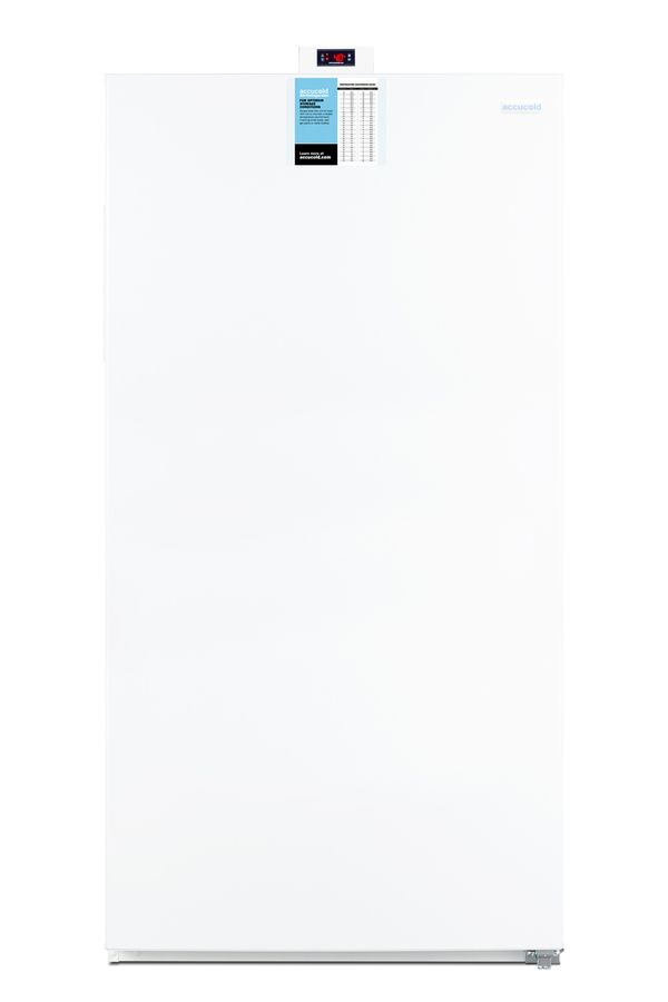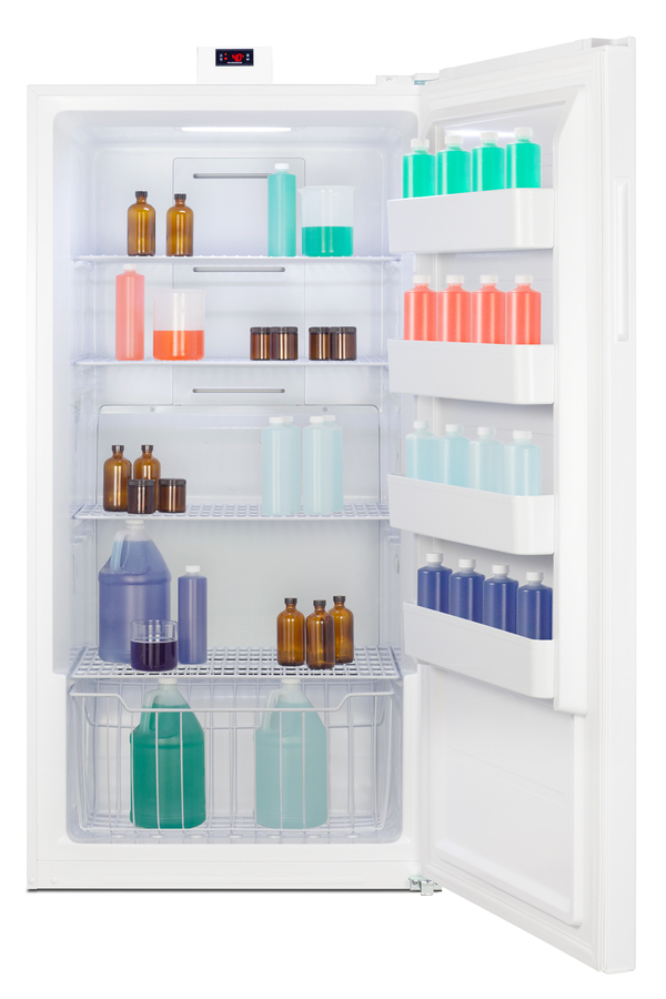 Accucold's general purpose series offers reliable cold storage in a variety of designs, including full-sized all-refrigerators ideal for clinical settings. Model FFUR19 is an upright all-refrigerator with a full 17 cu.ft. storage capacity. It comes in a white exterior finish with a right hand door swing and powerful seal to ensure items are protected. This unit has a sealed back for easier cleanup and a right angle cord to allow a better fit. The digital control panel is located on top of the cabinet, allowing you to manage the interior temperature without opening the door. The FFUF194 is designed to operate between 2 to 8ºC. For a matching frost-free freezer, see the FFUF194. The FFUR19 utilizes frost-free operation, eliminating the need to manually defrost the interior. Adjustable wire shelves accommodate a variety of sizes, with a removable lower basket for additional storage. Four door racks are included. This unit features LED lighting for an efficient view. With its low maintenance design and large storage capacity, the FFUR19 is ideal for storing non-critical products in research, clinical, and industrial laboratory applications. Note: This product is intended for a wide variety of basic storage applications. Storage of high-value vaccines, life science materials, and medical/clinical biologicals require a product offering tighter temperature control and/or alarms, monitoring, and backup. For more information, browse Accucold's purpose-built line or contact our product specialists at 1-888-4-MED-LAB.