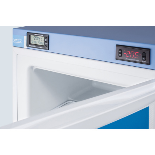 Accucold's MED2 series puts the most commonly requested features into a quality line of all-refrigerators and freezers specially designed to store vaccines and other sensitive materials in medical, scientific, pharmaceutical, and laboratory institutions. The FS24L7MED2 is a compact commercially listed manual defrost all-freezer designed for use on top of counters. This unit is designed with an external front control panel that allows users to adjust and monitor the temperature without opening the door and exposing stored contents to ambient temperature. A keyed lock offers security and a hospital grade 'green dot' cord provides added safety in high traffic environments. As recommended by the CDC, VFC and VFA programs, the FS24L7MED2 is equipped with a NIST calibrated thermometer that displays the current, minimum, and maximum temperatures to the nearest tenth of a degree with a readout viewable in Celsius or Fahrenheit. Each FS24L7MED2 ships with a certificate of calibration for your records. The thermometer includes an audible alarm to warn users if the interior has gone out of the programmed temperature range. The buffered temperature probe is encased in a glycol-filled bottle to best simulate the temperature of other stored contents, resulting in the utmost accuracy for temperature reporting. We include a pre-installed 3/8" probe hole for users who wish to install additional monitoring equipment. The FS24L7MED2 features a 1.4 cu.ft. interior capacity. A removable wire shelf offers convenient storage. It can operate as low at -20ºC, ideal for storing certain vaccines and other sensitive medical contents. This unit has a flat door liner as recommended by the CDC. All MED2 series units are assembled in the USA from domestic and imported components. This unit can also be customized with additional features, including a power-out alarm or USB temperature logger with a digital display. Contact our product specialists to learn more. Products in the MED2 series come with a two year warranty on parts and labor and a five year warranty on the compressor. *NOTE: This unit's thermostat is pre-set for Celsius. If you prefer Fahrenheit, add complimentary option DTMEDF or let your sales representative know upon order. NOTE: Accucold freezers are purpose-built to the support meeting the current CDC (Centers for Disease Control) guidelines for the storage of vaccines. At this time, Accucold refrigerators have not been evaluated to the new NSF 456 standard. As referenced in the current Vaccine Storage and Handling Toolkit, these units incorporate several key features for stable operation. For additional temperature assurance, the CDC recommends a calibrated digital data logger (DDL), which can be added with the factory-installed option DL2B or addition of the DL2BKit accessory.