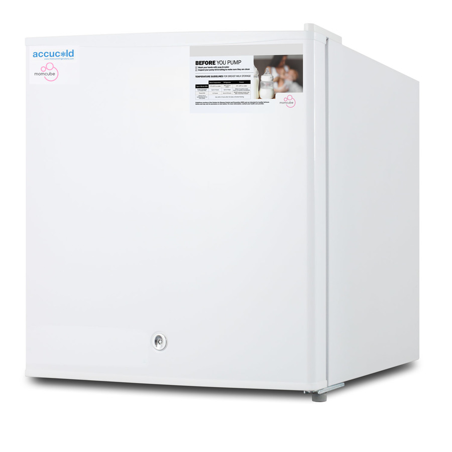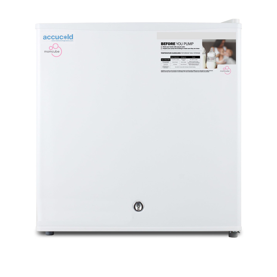 ACCUCOLD offers a line of MOMCUBE® all-freezers designed for reliable long-term storage of breast milk. Available in a range of sizes, these units are ideal for daycare centers, maternity wards, and similar environments serving nursing mothers. The F24LMC is a countertop MOMCUBE® all-freezer. The 1.4 cu.ft. interior has a manual defrost system for better efficiency and less temperature variation. A removable wire shelf allows for easy storage options, with a seamless interior liner to simplify cleanup. The dial thermostat is located inside. This unit has a flat door liner as recommended by the CDC for improved stability. The FS24LMC includes a factory installed lock for added security, with a reversible door that offers more convenience when placing the unit. This model can also be customized with a variety of options, including a digital thermostat, temperature alarm, and more. A hospital grade cord with a green dot plug is included to ensure the cord isn't easily detached from your outlet. Accucold MOMCUBE® freezers are also available in undercounter and ADA compliant sizes. All MOMCUBE® freezers can also be paired with our MOMCUBE® refrigerators, available with interior locking compartments for added privacy. Browse the full line on our website or contact our product specialists at 718-893-3900 to learn more.