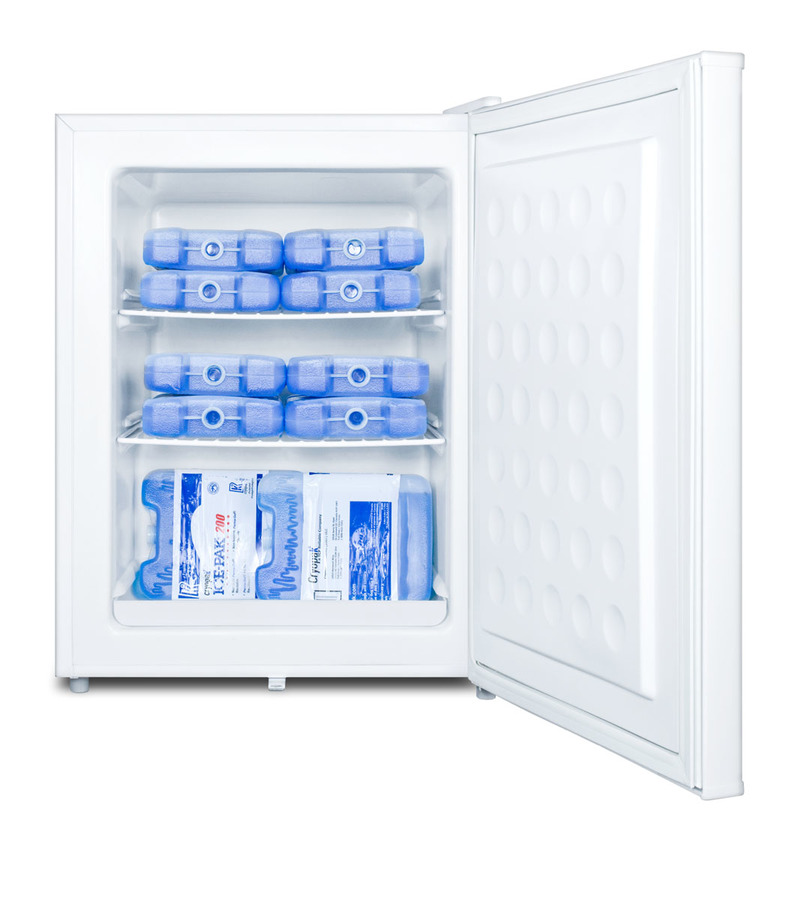 Accucold by Summit Appliance carries a quality selection of compact freezers for general purpose use in medical facilities. The FS30L7 is a compact 1.8 cu.ft. all-freezer that is ETL-S listed to NSF-7 commercial standards. It comes in a white exterior finish, with a factory installed lock on the user-reversible door. The interior includes removable wire shelves for optimum circulation and a one-piece interior liner to ensure easy cleanup. The dial thermostat is located inside the unit. This freezer is manual defrost and operates at an average temperature of -20ºC. With reliable construction and a convenient size, the FS30L7 is the ideal freezer for storing select items in institutional facilities. This unit can also be ordered with more advanced medical features, including a digital thermostat, self-closing door, temperature alarm, and more. Note: This product is intended for a wide variety of basic storage applications. Storage of high-value vaccines, life science materials, and medical/clinical biologicals require a product offering tighter temperature control and/or alarms, monitoring, and backup. For more information, browse Accucold's purpose-built line or contact our product specialists at 1-888-4-MED-LAB.