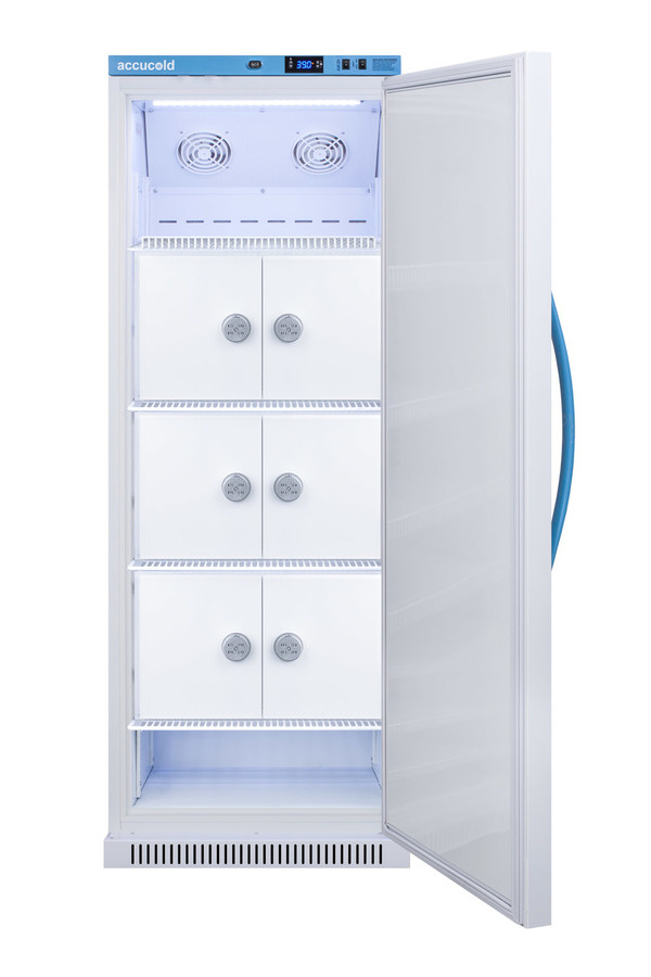 Accuold's MOMCUBE® is a highly reliable, hospital-grade refrigerator designed for mother's milk storage. All MOMCUBE® units are an ideal addition to employee wellness rooms, daycare centers, and work environments seeking to adhere to Section 4207 of the Patient Protection and Affordable Care Act. They are laboratory-tested to stay within the CDC's recommended temperature range, whereas similar dorm and residential-style units operate at temperatures that are unsuitable for breast milk storage. Inside, the MLRS12MCLK has six lockers, each with a combination lock to ensure privacy for mothers storing their milk, which can be reset or overridden as needed with included master keys. A cycle defrost system allows for little to no maintenance of the unit, while a soft LED light is included with an on/off switch for easy viewing of interior. The MOMCUBE® includes an LED display that allows the user to monitor and change the temperature as needed. Several alarms ensure temperature stability, and the factory-installed external door lock offers added security. The factory-installed antimicrobial handle is powder-coated with naturally occurring silver ions, which help to reduce the spread of germs, allowing for a safer, cleaner user experience. A hospital grade cord with 'green dot' plug is also included for added safety in high traffic areas. MOMCUBE® units of various capacity, heights, and interiors are available. Explore the entire MOMCUBE® Series on our website or contact our sales team at 718-893-3900 ext. 509 for more options.