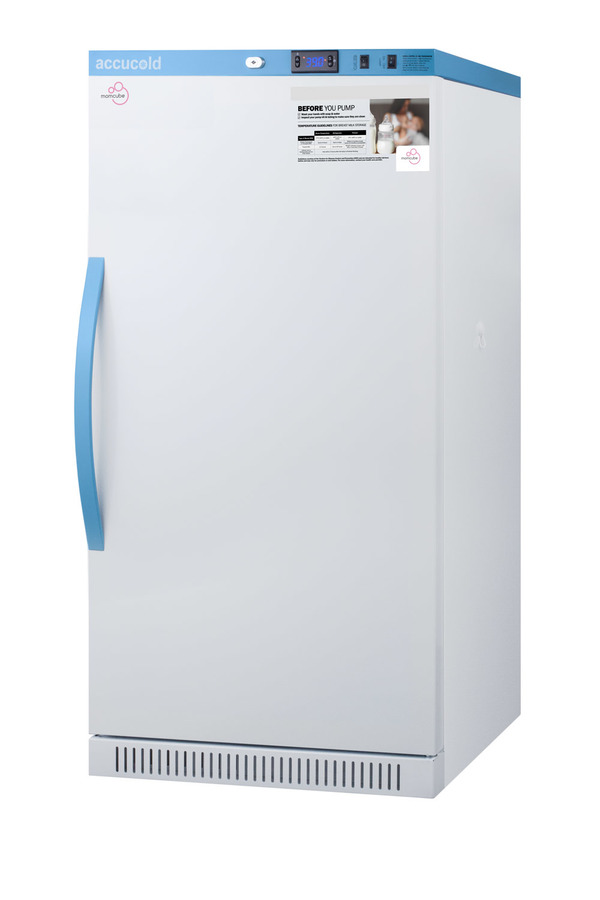 Accuold's MOMCUBE® is a highly reliable, hospital-grade refrigerator designed for mother's milk storage. All MOMCUBE® units are an ideal addition to employee wellness rooms, daycare centers, and work environments seeking to adhere to Section 4207 of the Patient Protection and Affordable Care Act. They are laboratory-tested to stay within the CDC's recommended temperature range, whereas similar dorm and residential-style units operate at temperatures that are unsuitable for breast milk storage. Inside, the MLRS8MC has seven adjustable wire shelves for increased air circulation. A cycle defrost system allows for little to no maintenance of the unit, while a soft LED light is included with an on/off switch for easy viewing of interior. The MOMCUBE® includes an LED display that allows the user to monitor and change the temperature as needed. Several alarms ensure temperature stability, and the factory-installed external door lock offers added security. The self-closing, reversible door allows for flexibility in unit placement, while the factory-installed antimicrobial handle is powder-coated with naturally occurring silver ions, which help to reduce the spread of germs, allowing for a safer, cleaner user experience. A hospital grade cord with 'green dot' plug is also included for added safety in high traffic areas. MOMCUBE® units of various capacity, heights, and interiors are available. Explore the entire MOMCUBE® Series on our website or contact our sales team at 718-893-3900 ext. 509 for more options.