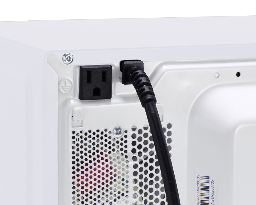 Plug the refrigerator into the microwave's rear outlet for easy 1-plug operation that will temporarily disable the fridge while the microwave is in use to prevent power surges