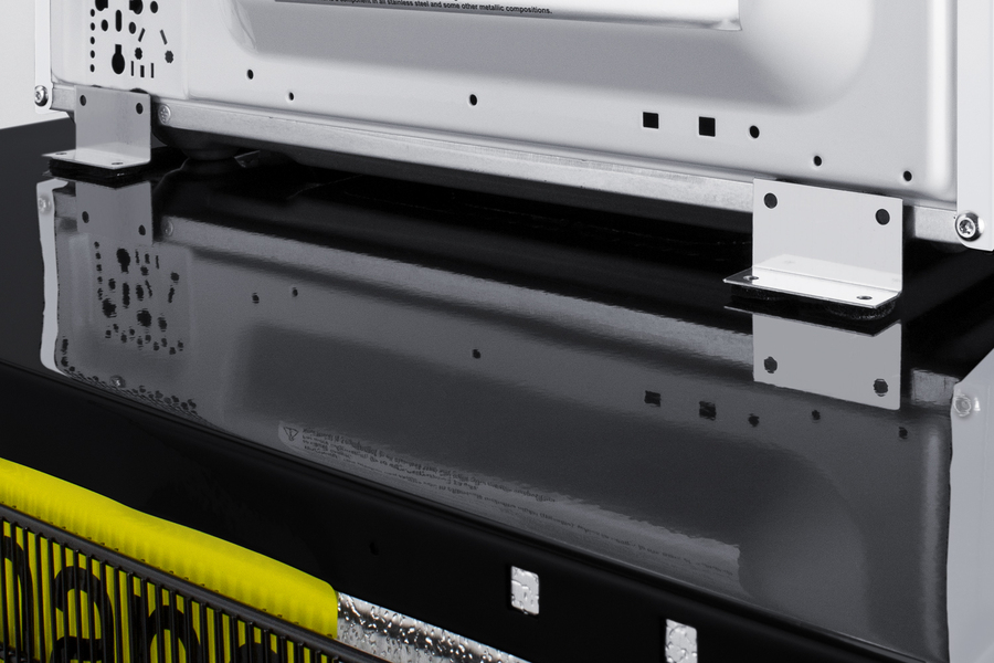 Ships with two removable brackets that let you secure the microwave on top of the refrigerator
