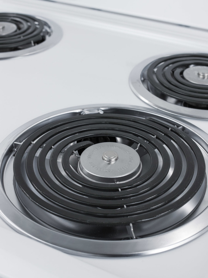 Slim-fitting coil range perfectly sized for apartments and smaller home kitchens