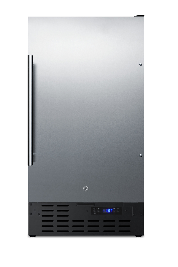 SUMMIT brings true convenience to small kitchen spaces with the SCFF1842SS, an 18" wide fully frost-free all-freezer. SCFF1842SS is front-breathing for built-in use under counters, but also features a fully finished cabinet to allow freestanding use. The reversible stainless steel wrapped door includes a factory installed lock and professional handle. This unit comes with a black cabinet and sealed back. Inside, the SCFF1842SS is fully frost-free to minimize user maintenance, with slide-out chrome shelves that can be adjusted to accommodate a variety of items in the 2.7 cu.ft. interior. This unit includes a digital thermostat for easy and intuitive temperature control. With a uniquely slim size and user-friendly features, the SCFF1842SS is the ideal freezer for space-challenged spaces. This model meets UL-471 standards and is ETL-S listed to NSF-7 for use in commercial environments.