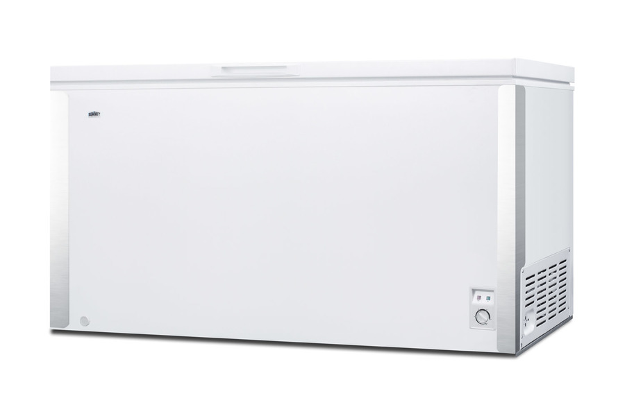 SUMMIT COMMERCIAL offers a quality selection of manual defrost chest freezers designed for a variety of storage applications in commercial establishments. The SCFM232 is UL-S listed to NSF-7 standards for commercial use. It comes in a white finish with stainless steel corner protectors factory installed on the exterior to ensure protection in high traffic areas. The seamless interior offers nearly 25 cu.ft. of storage capacity, with two removable plastic baskets for added convenience. This unit utilizes static manual defrost operation. In addition to this unit, SUMMIT COMMERICAL offers additional sizes of commercially listed manual defrost freezers, as well as frost-free choices and low temperature freezers all approved to NSF commercial standards. NOTE: This unit may differ from images displayed.