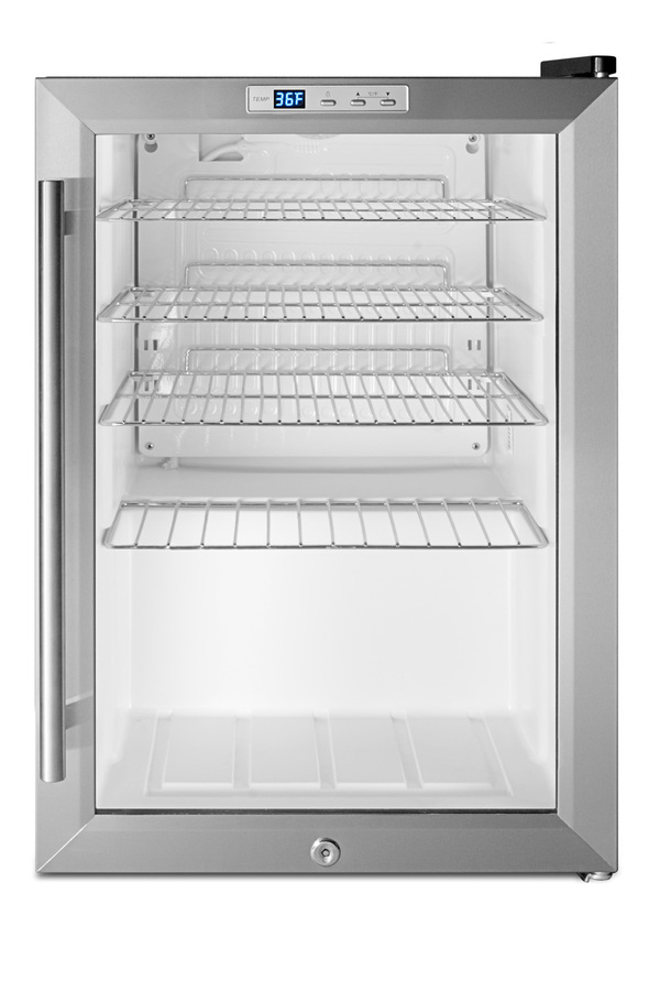 Heat resistant design provides clear view of stored products, with an elegant trim in stainless steel