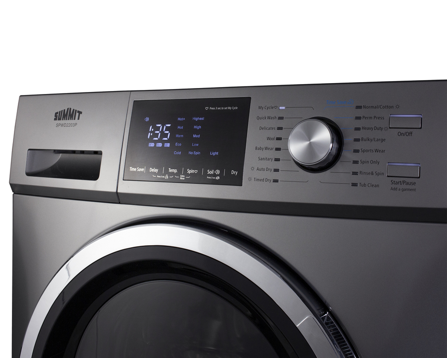SUMMIT SPWD2203P is a 24" wide washer/dryer combo designed to maximize laundry capacity in an easy fit.